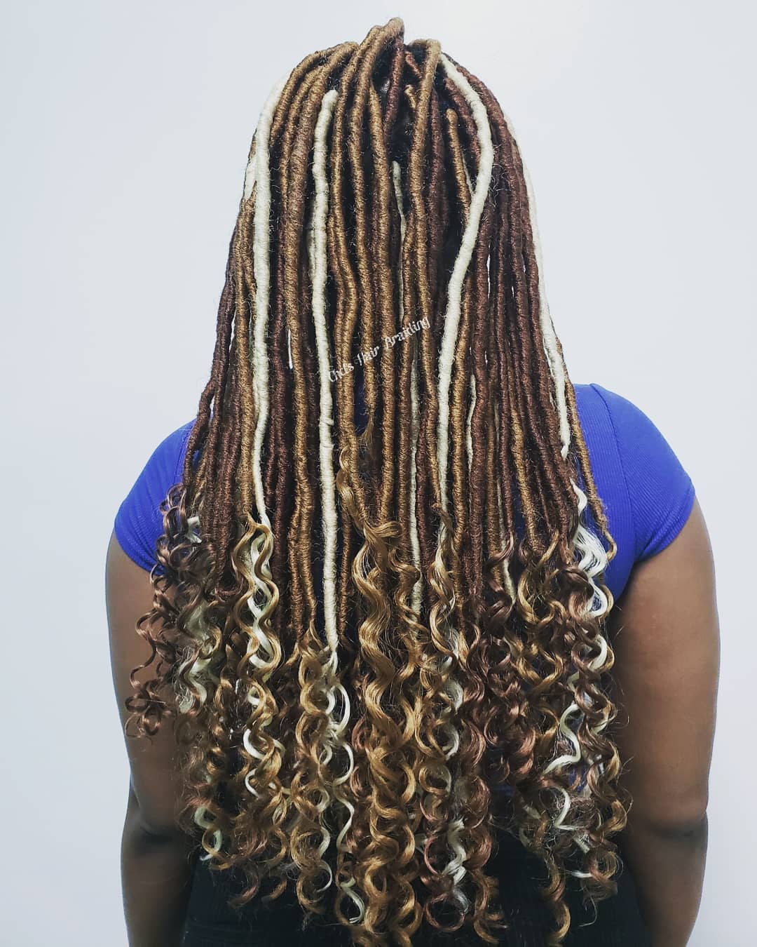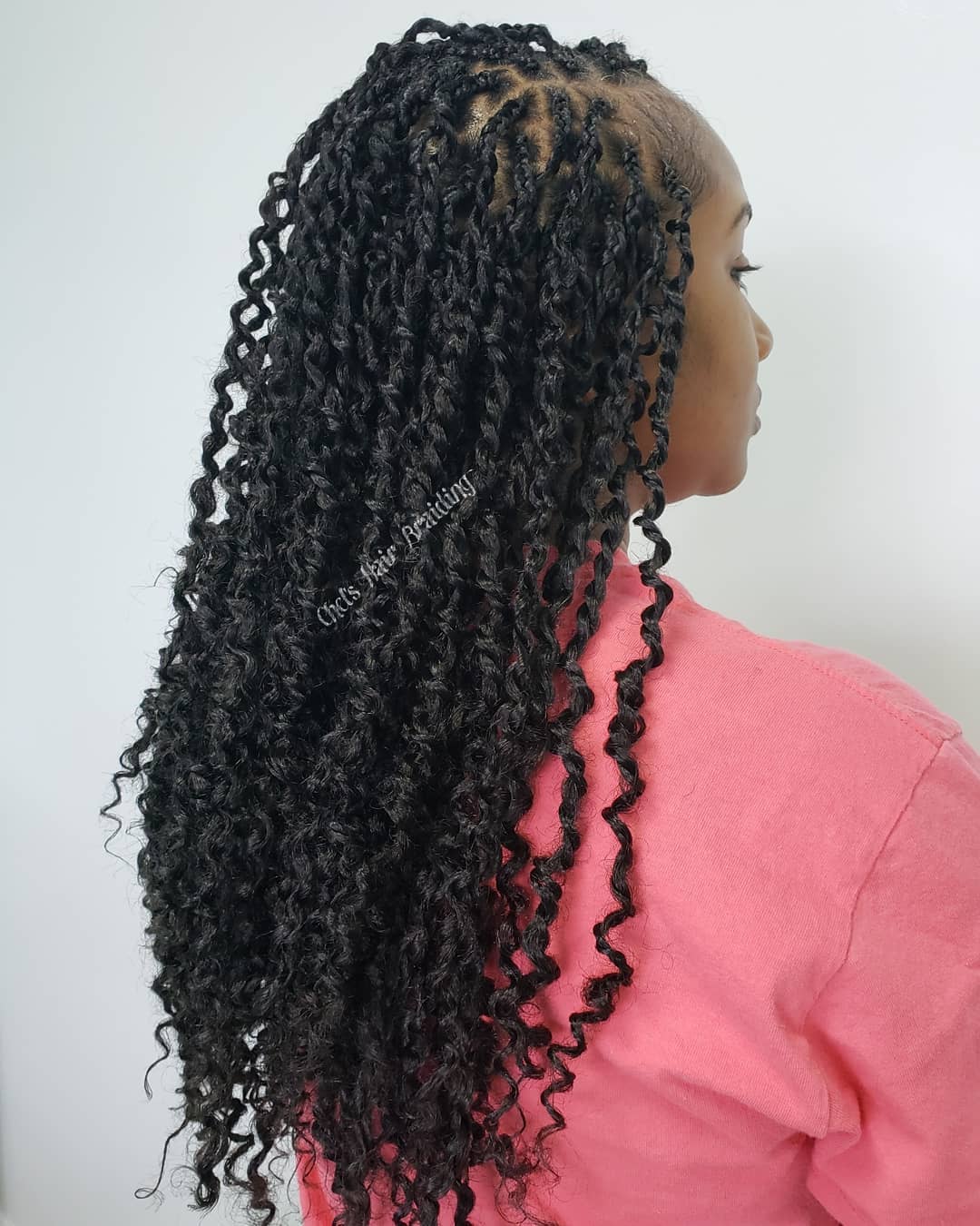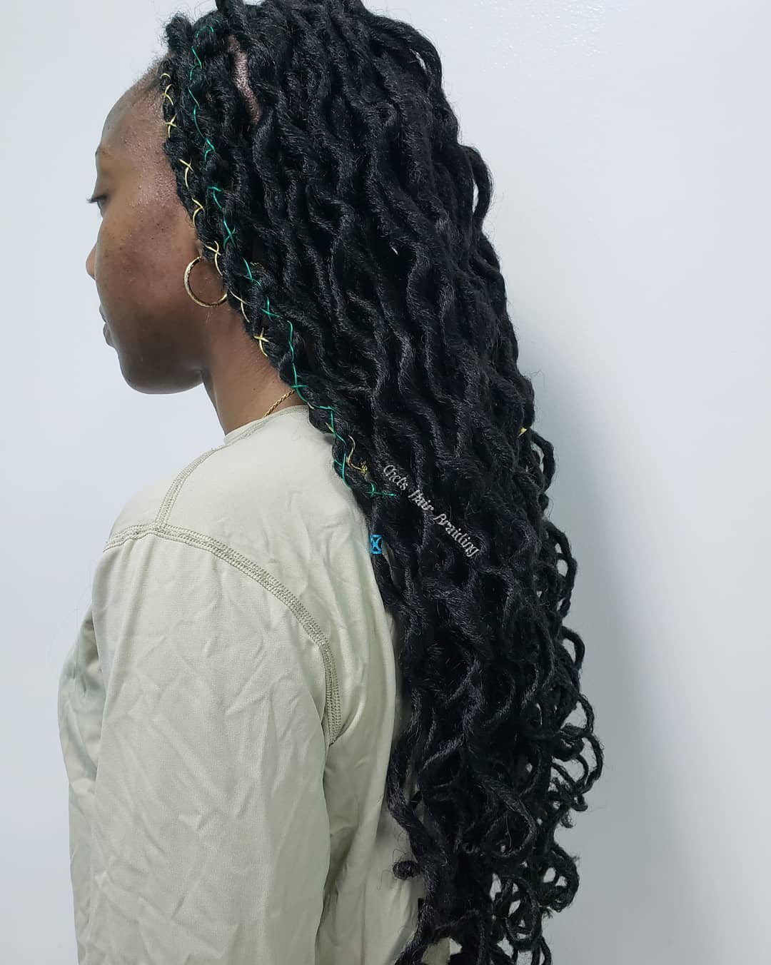This gorgeous and creative style is the perfect alternative to dreading your own hair. It is a great alternative to real locs using crochet locs and wrap around each locs. Comes in distress locs, butterfly locs, and goddess locs. It is a “carefree black girl” personified. The older the best locs will look.