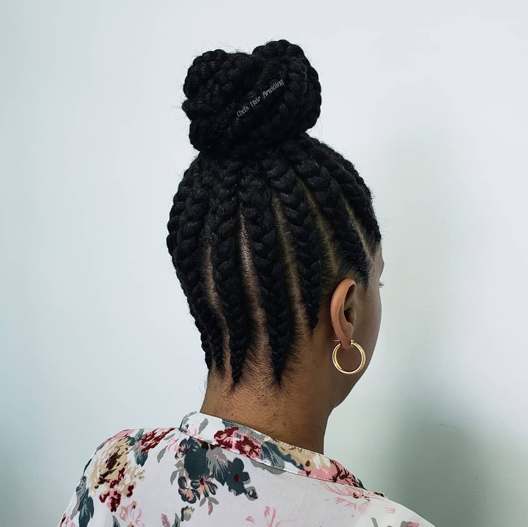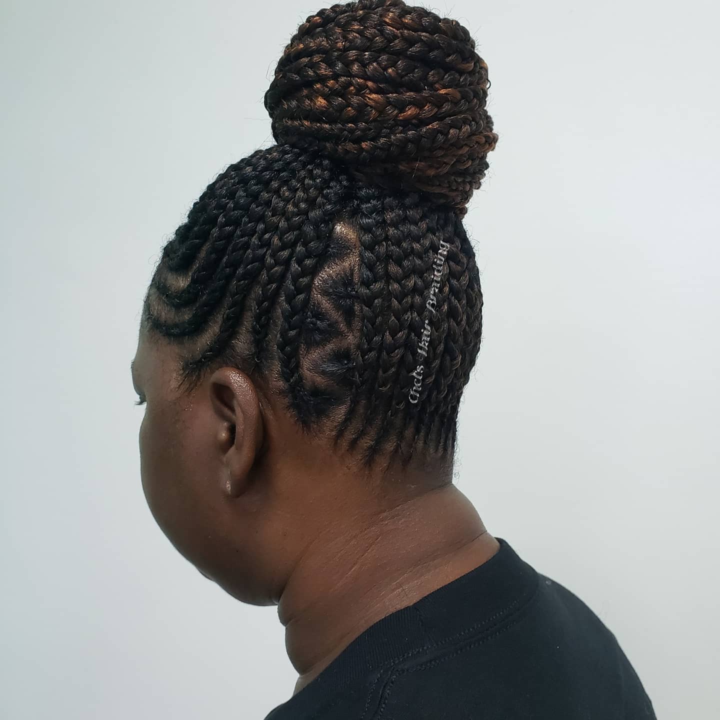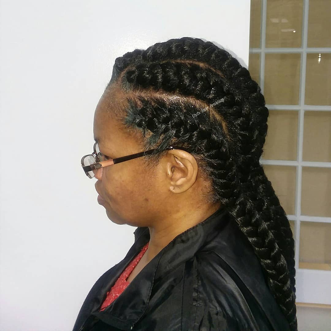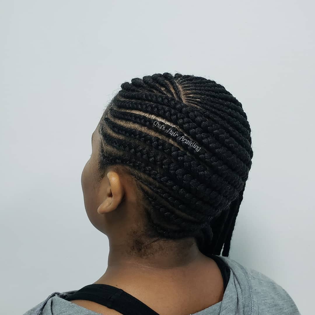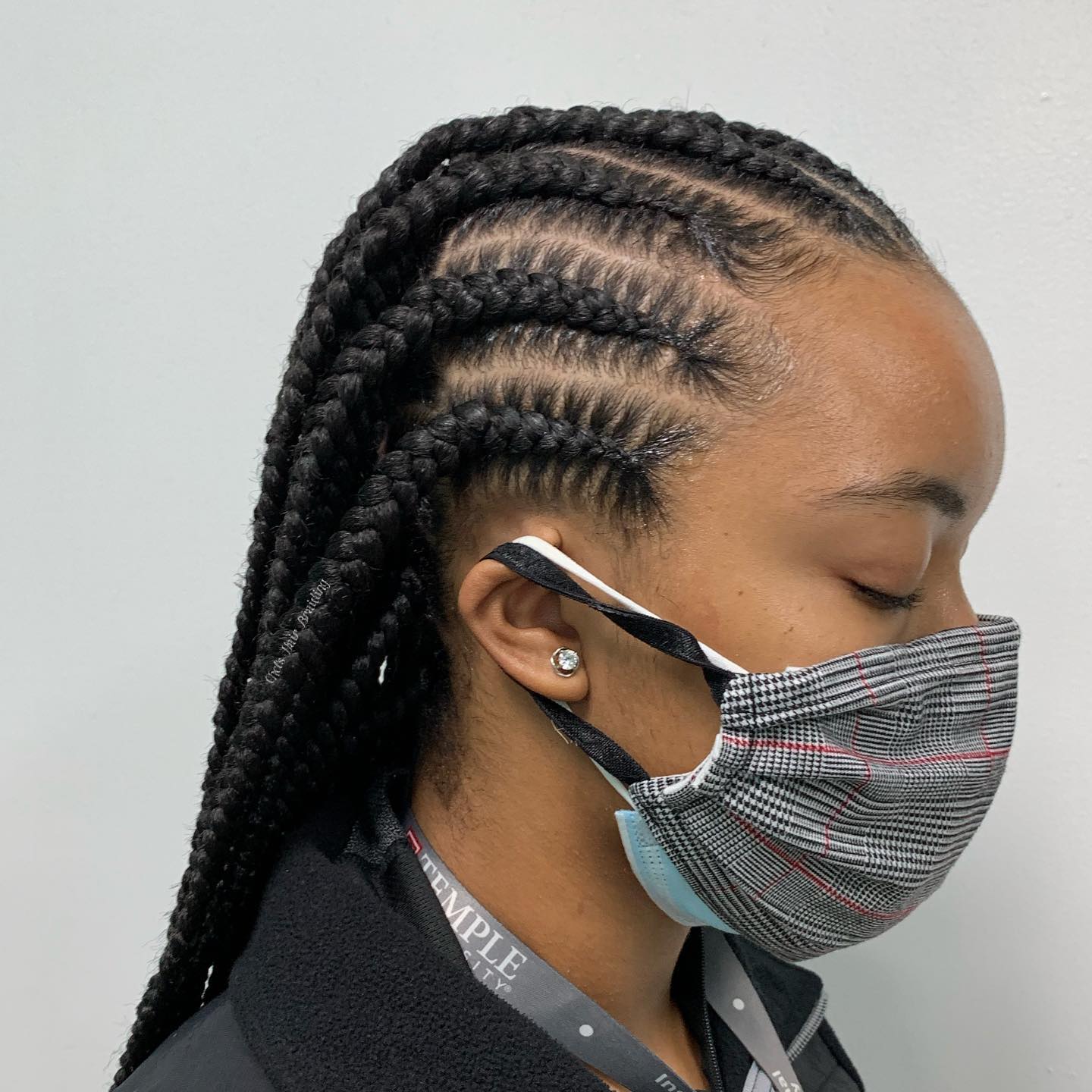 Evolved from Ghana braid and feed-in cornrows. It is fire and elegant. Stitch braids are a good protective style. Will aid length retention due to less hair manipulation. Great fit for all ages. The magnificence of the stitch braids is in the final look a neat and unique look. One can opt to add decorations (beads or colorful strain to some braids). Long lasting. You can have a bun, ponytail, half up and half down, etc.