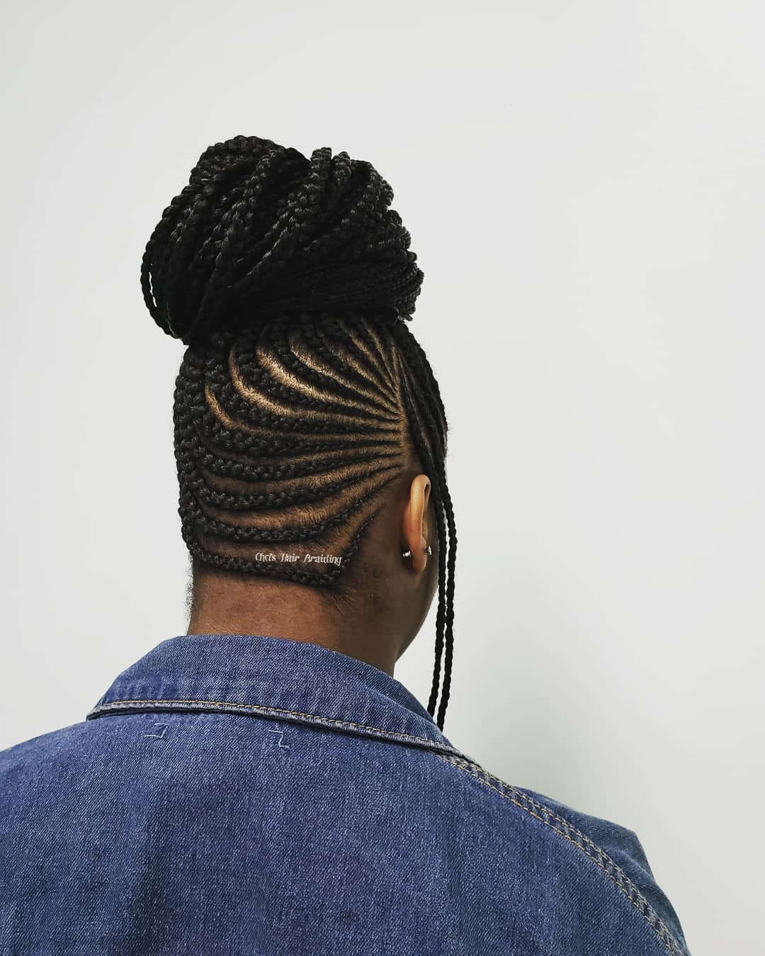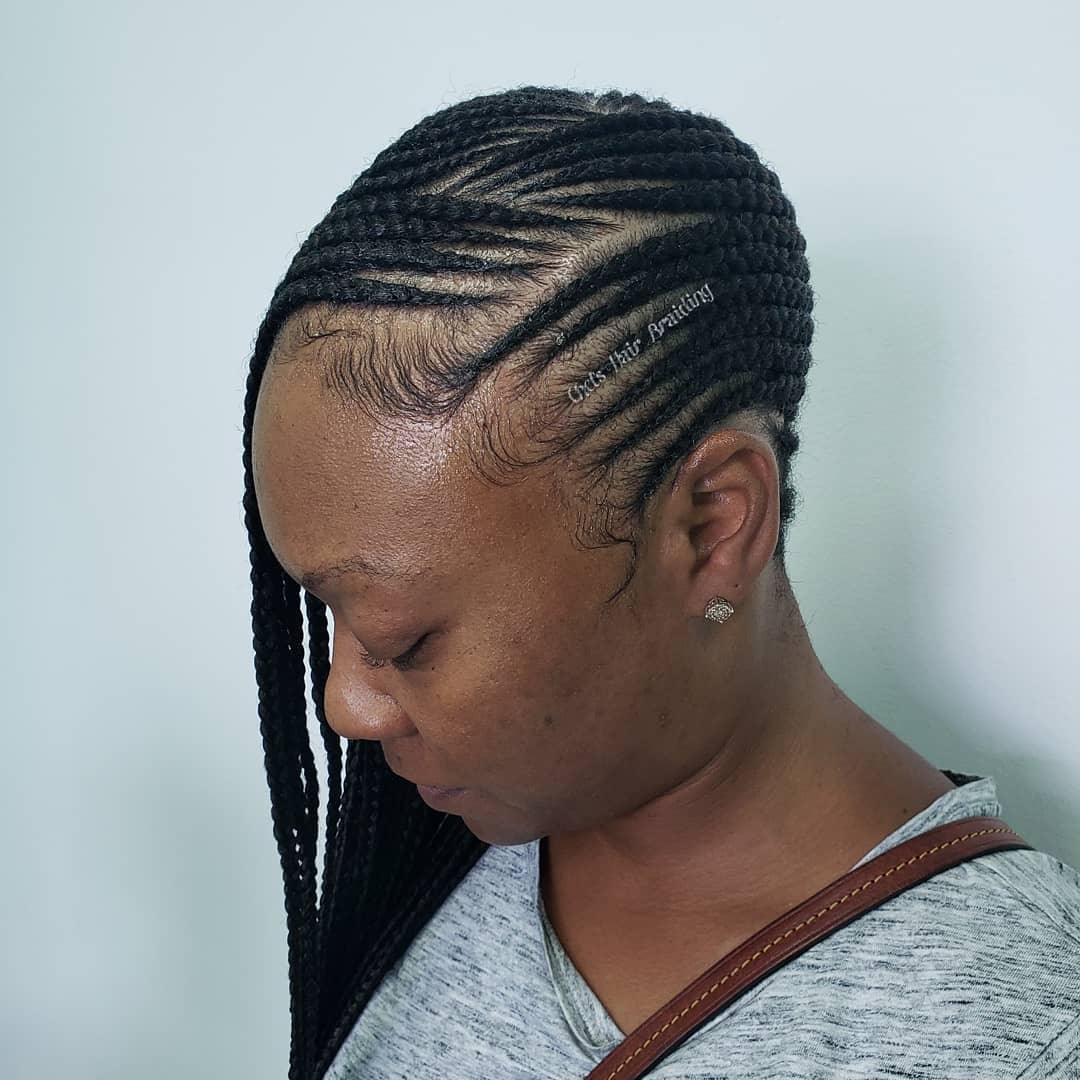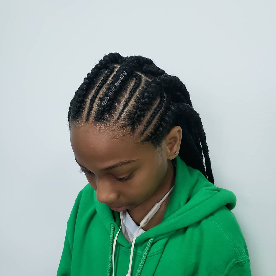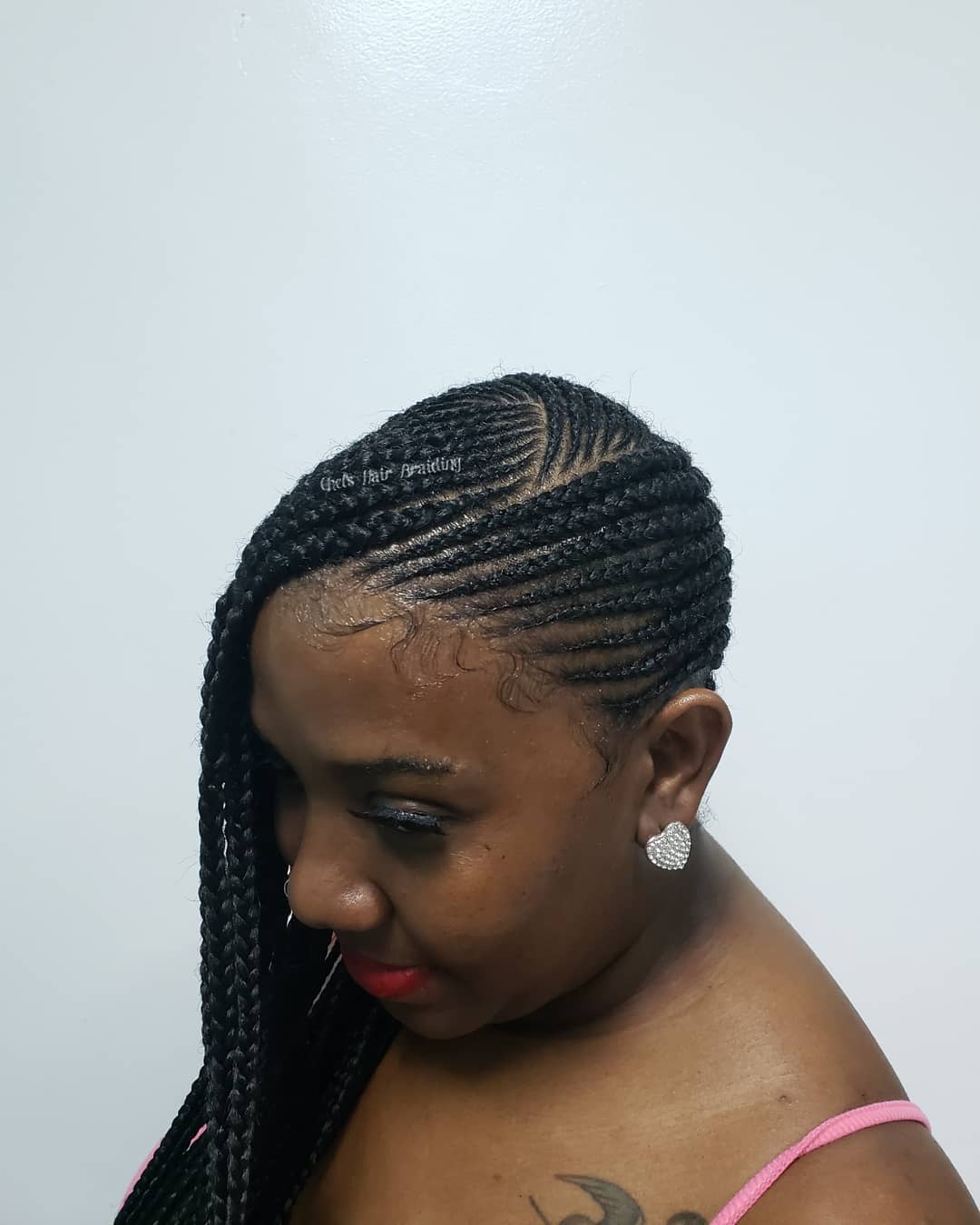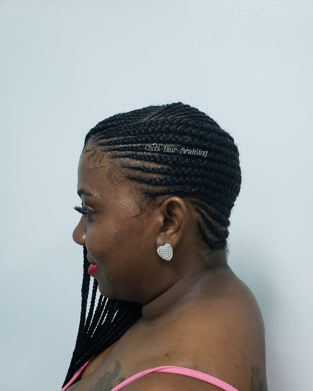 Evolved from Ghana braid and feed-in cornrows. It is fire and elegant. Stitch braids are a good protective style. Will aid length retention due to less hair manipulation. Great fit for all ages. The magnificence of the stitch braids is in the final look a neat and unique look. One can opt to add decorations (beads or colorful strain to some braids). Long lasting. You can have a bun, ponytail, half up and half down, etc.