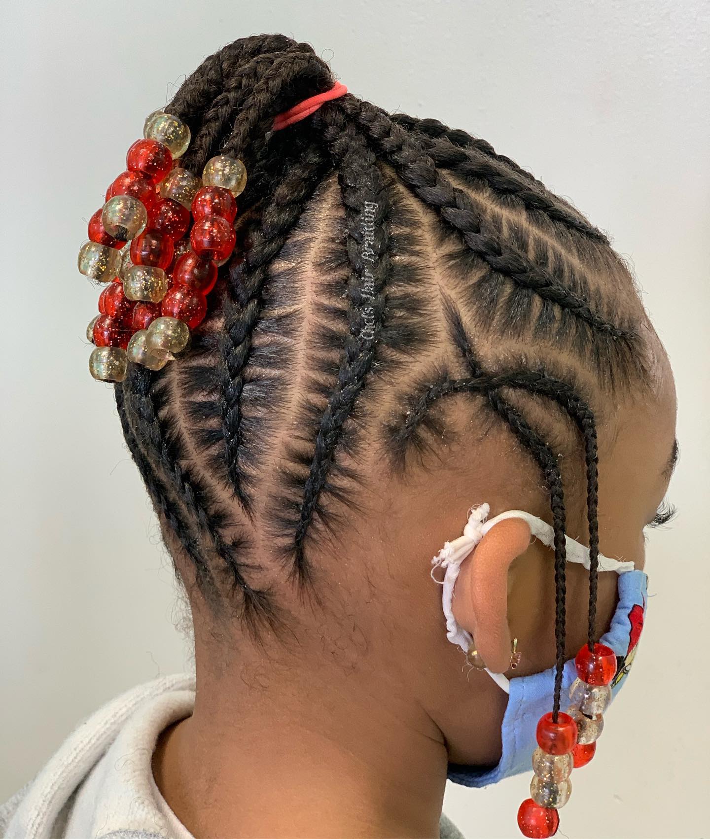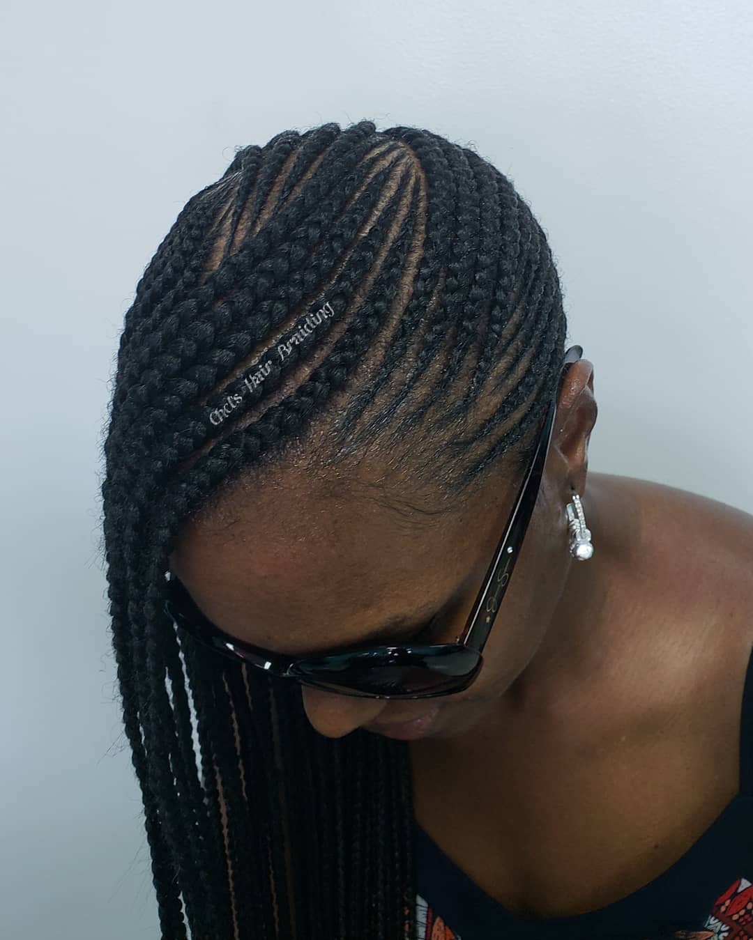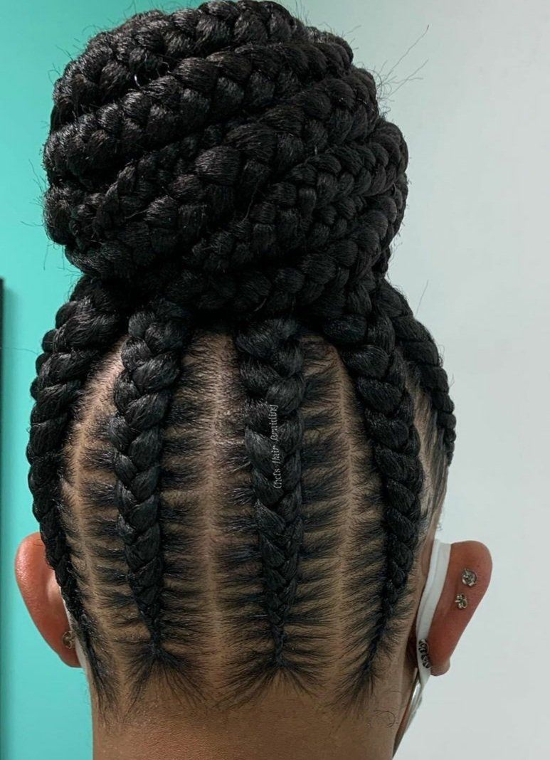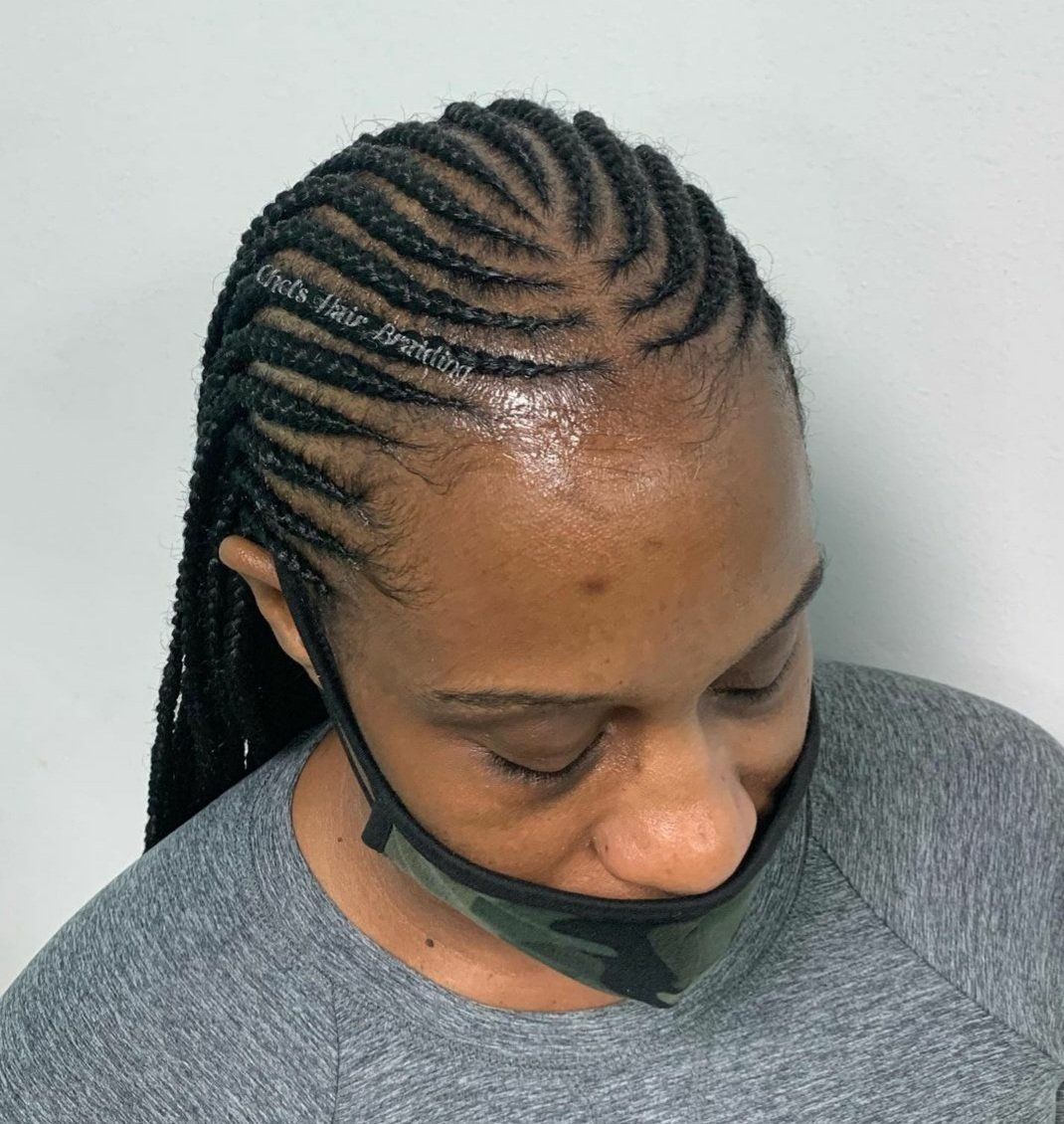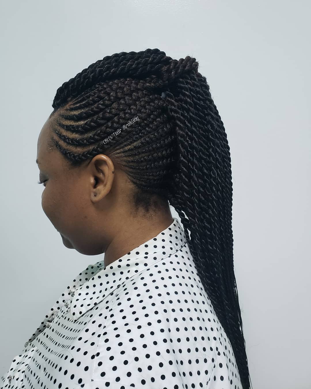 Evolved from Ghana braid and feed-in cornrows. It is fire and elegant. Stitch braids are a good protective style. Will aid length retention due to less hair manipulation. Great fit for all ages. The magnificence of the stitch braids is in the final look a neat and unique look. One can opt to add decorations (beads or colorful strain to some braids). Long lasting. You can have a bun, ponytail, half up and half down, etc.