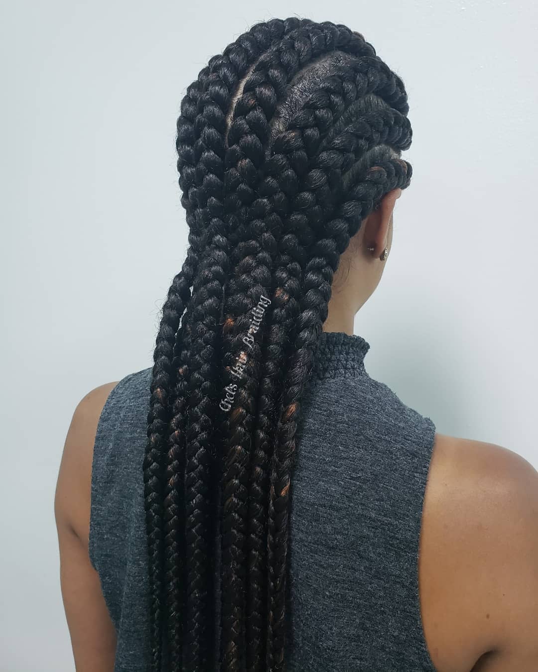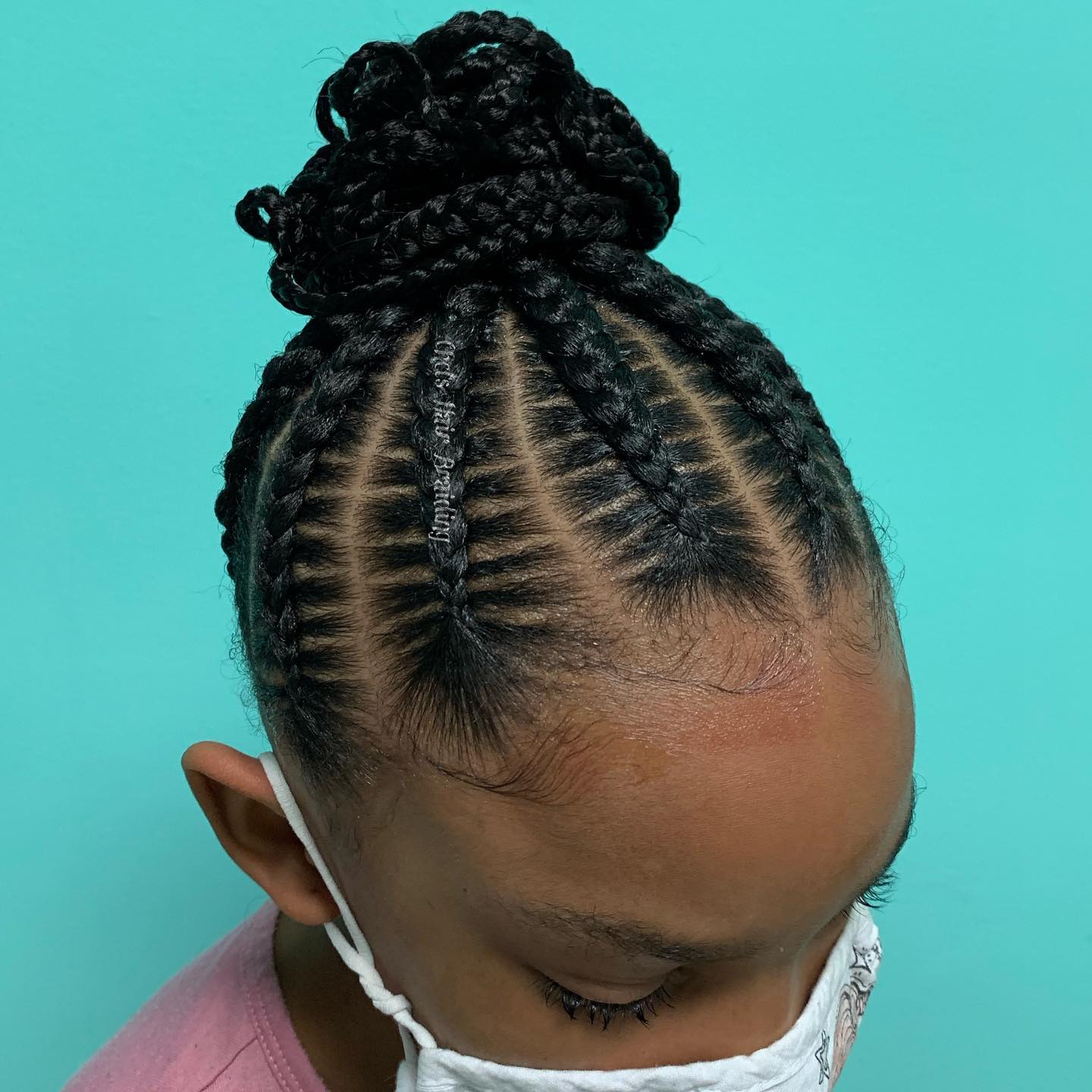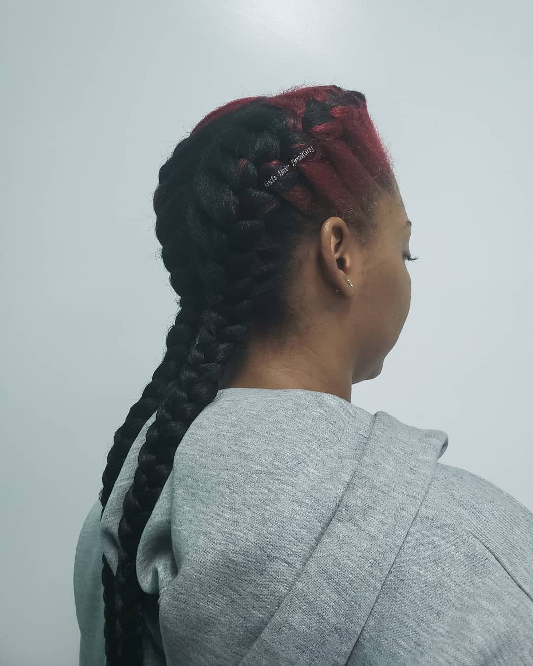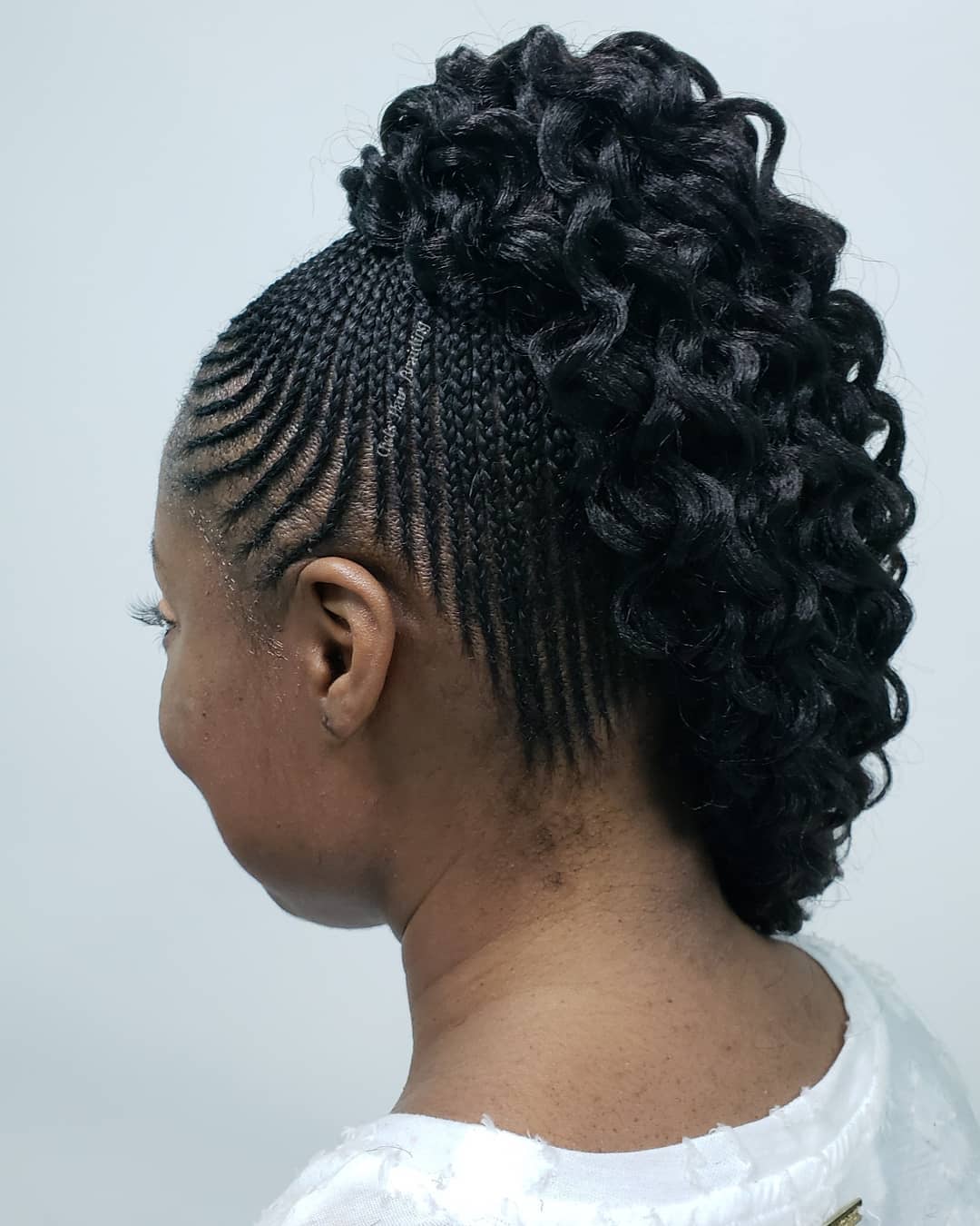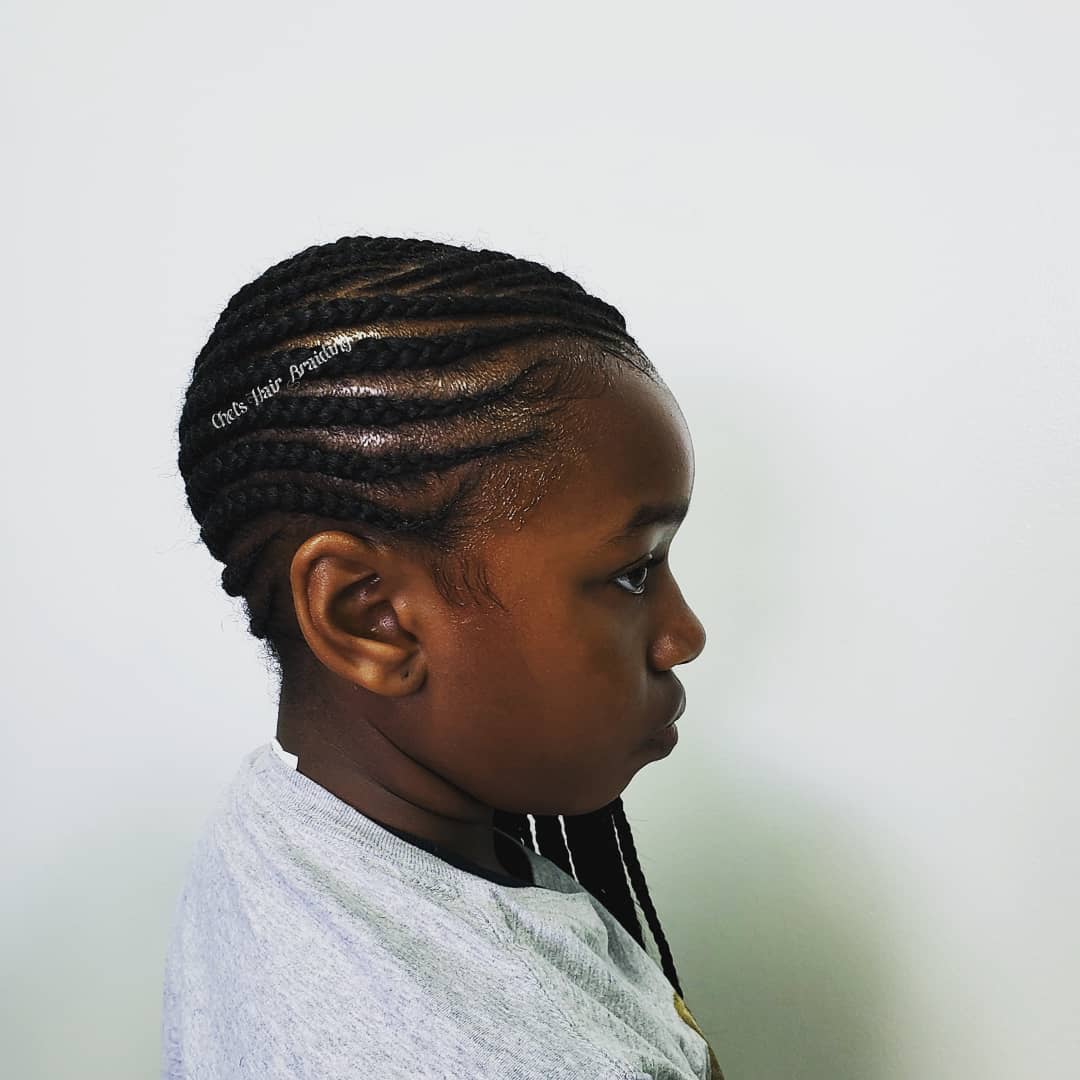 Evolved from Ghana braid and feed-in cornrows. It is fire and elegant. Stitch braids are a good protective style. Will aid length retention due to less hair manipulation. Great fit for all ages. The magnificence of the stitch braids is in the final look a neat and unique look. One can opt to add decorations (beads or colorful strain to some braids). Long lasting. You can have a bun, ponytail, half up and half down, etc.