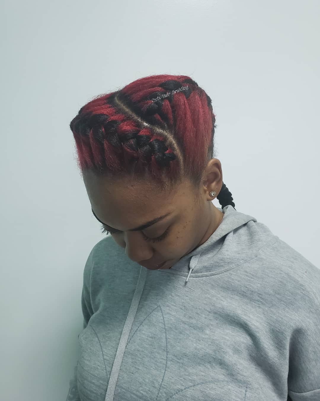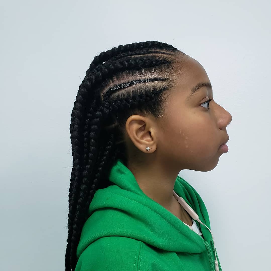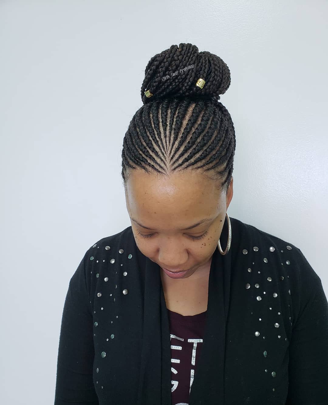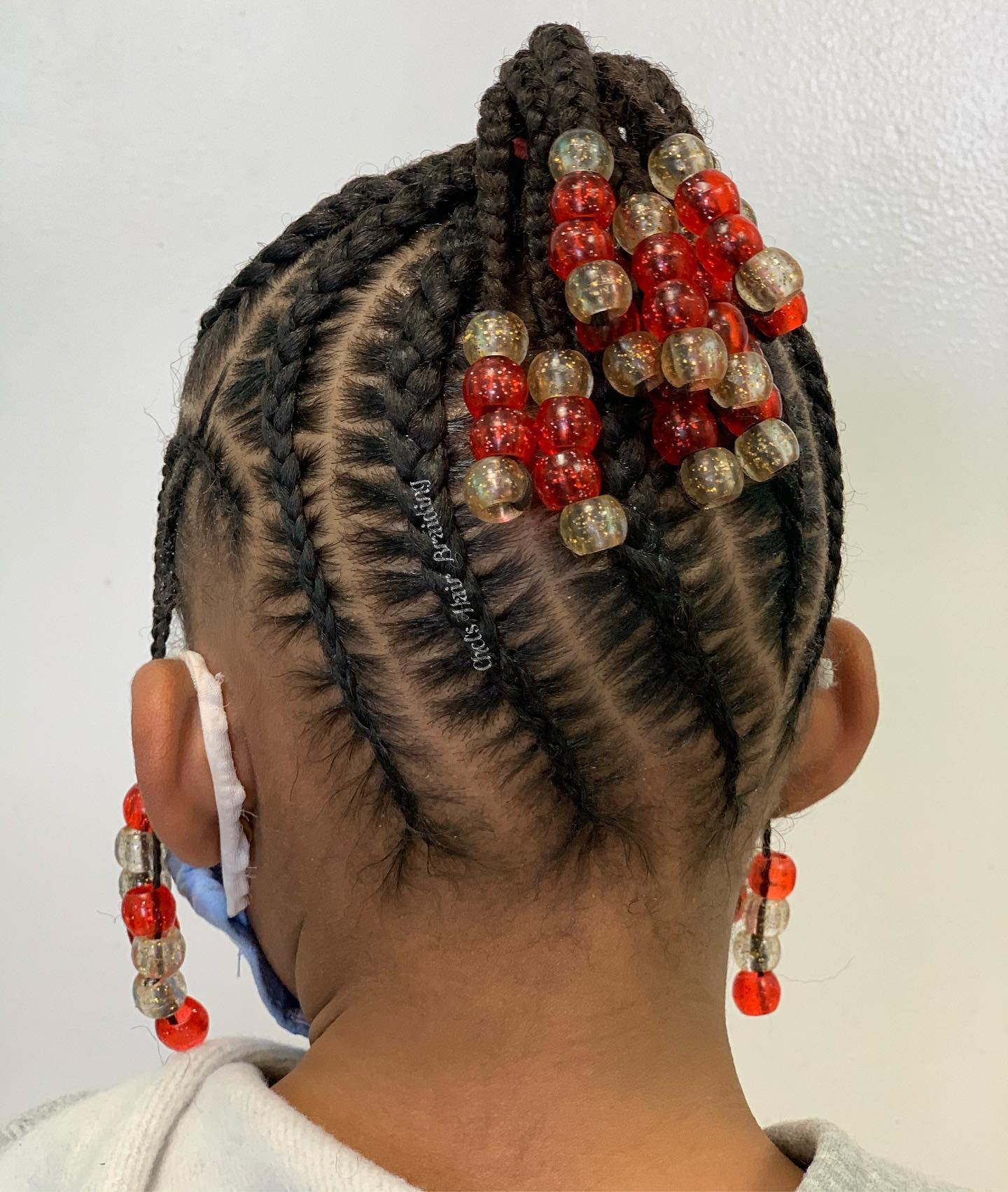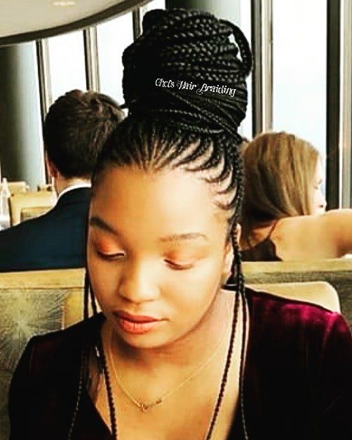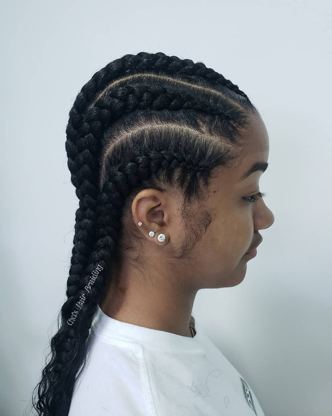 Evolved from Ghana braid and feed-in cornrows. It is fire and elegant. Stitch braids are a good protective style. Will aid length retention due to less hair manipulation. Great fit for all ages. The magnificence of the stitch braids is in the final look a neat and unique look. One can opt to add decorations (beads or colorful strain to some braids). Long lasting. You can have a bun, ponytail, half up and half down, etc.