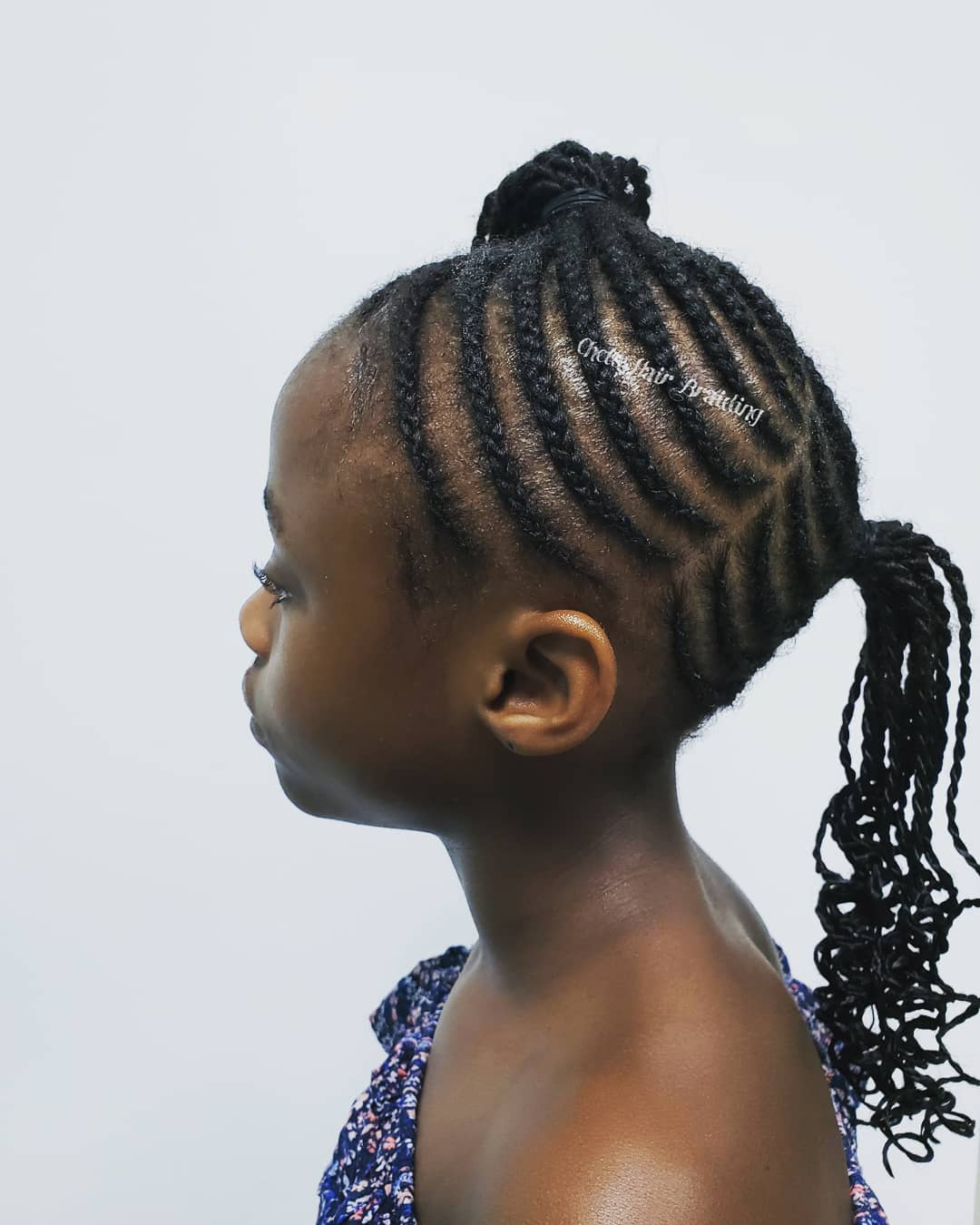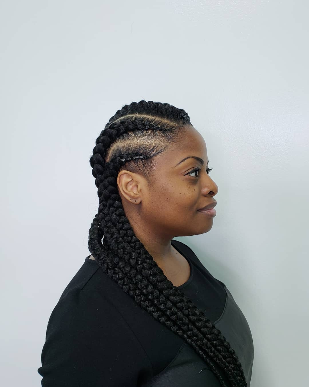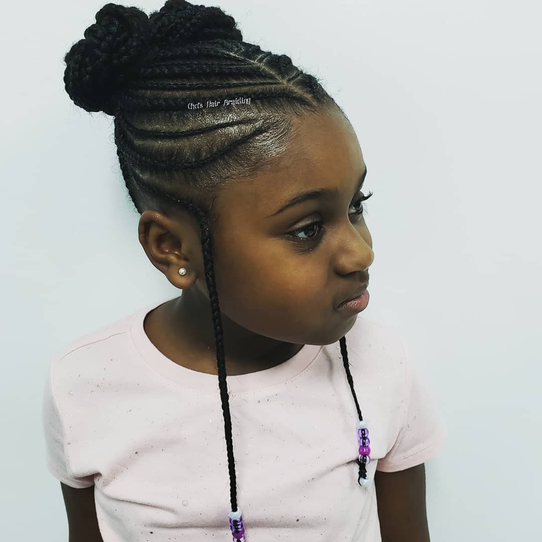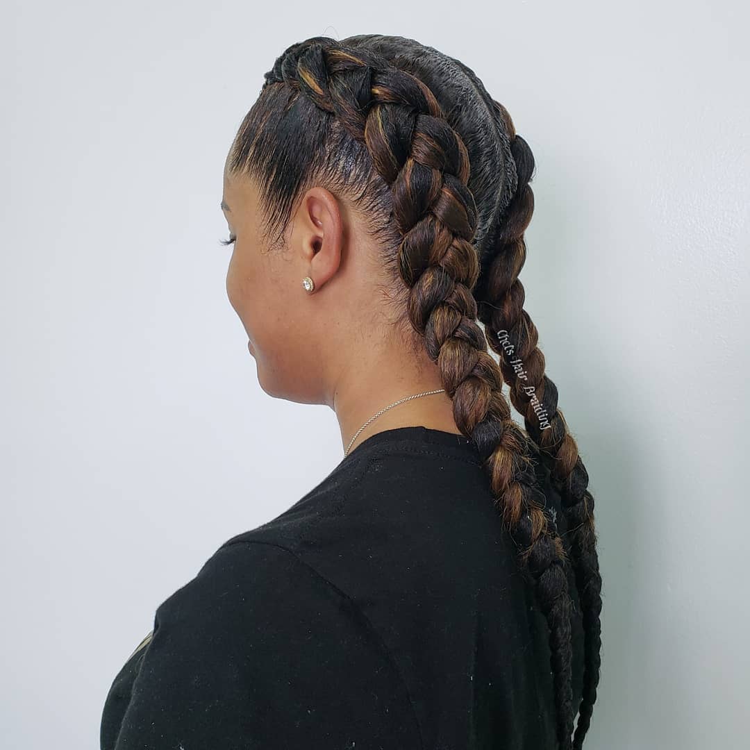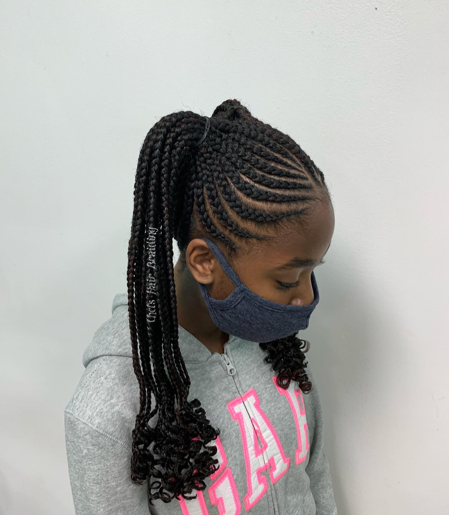 Evolved from Ghana braid and feed-in cornrows. It is fire and elegant. Stitch braids are a good protective style. Will aid length retention due to less hair manipulation. Great fit for all ages. The magnificence of the stitch braids is in the final look a neat and unique look. One can opt to add decorations (beads or colorful strain to some braids). Long lasting. You can have a bun, ponytail, half up and half down, etc.