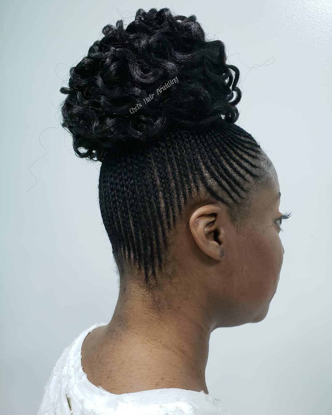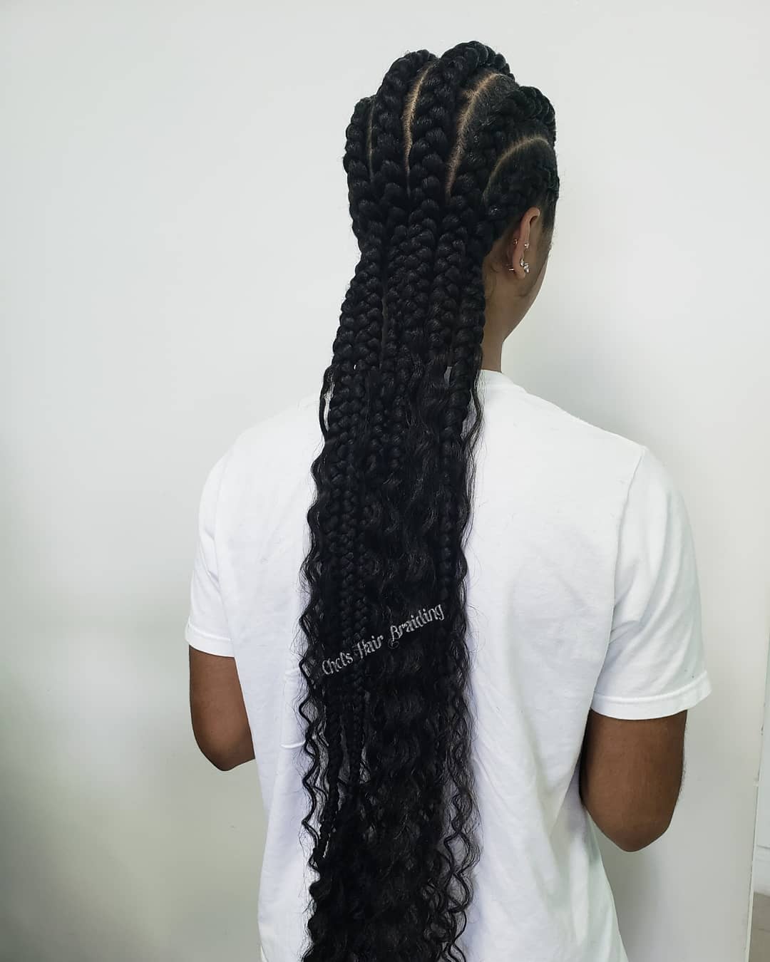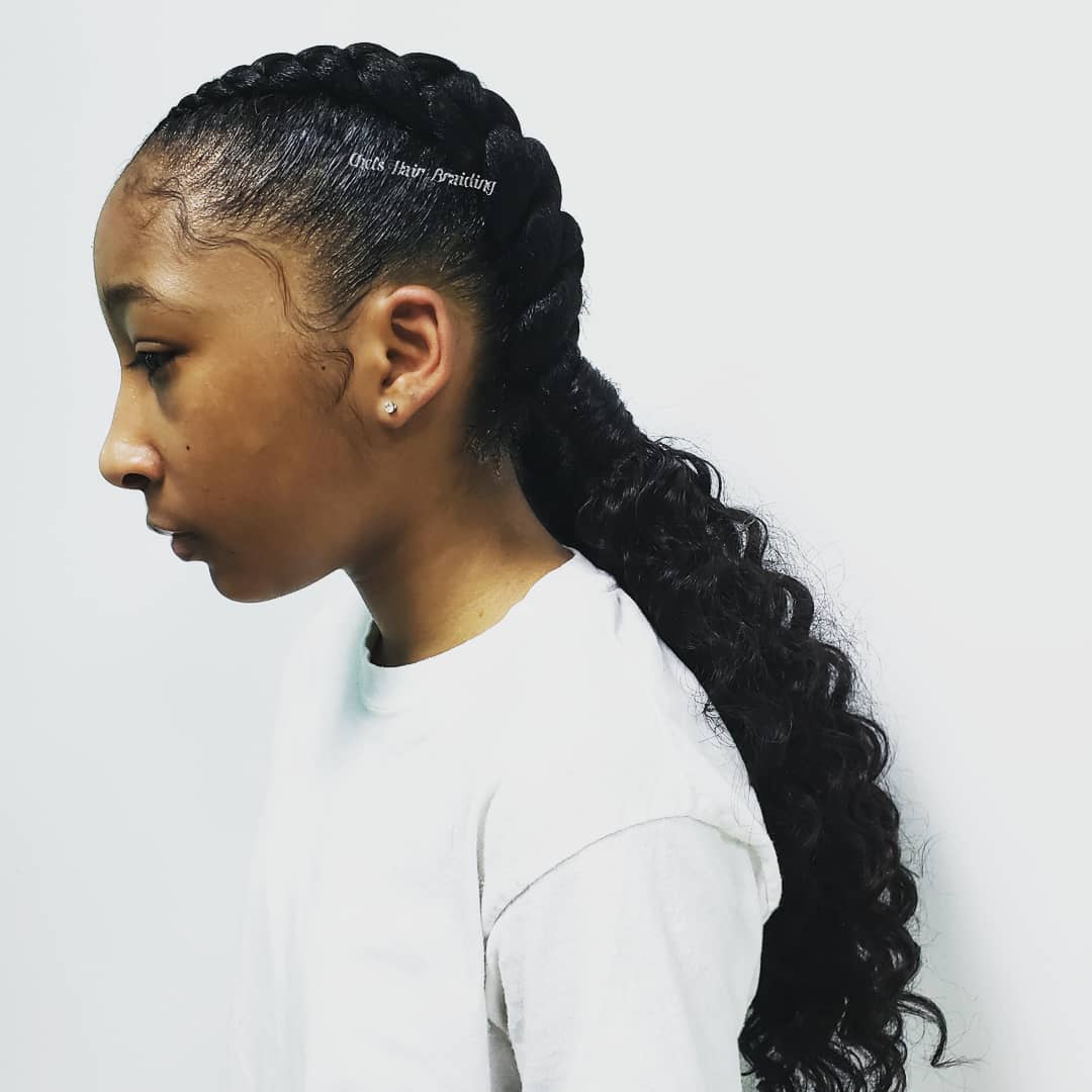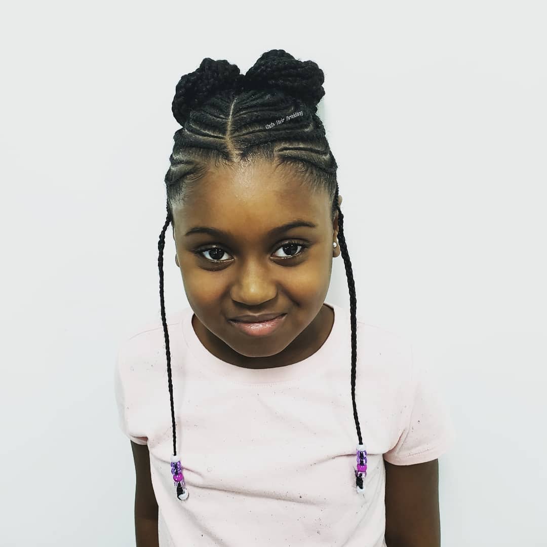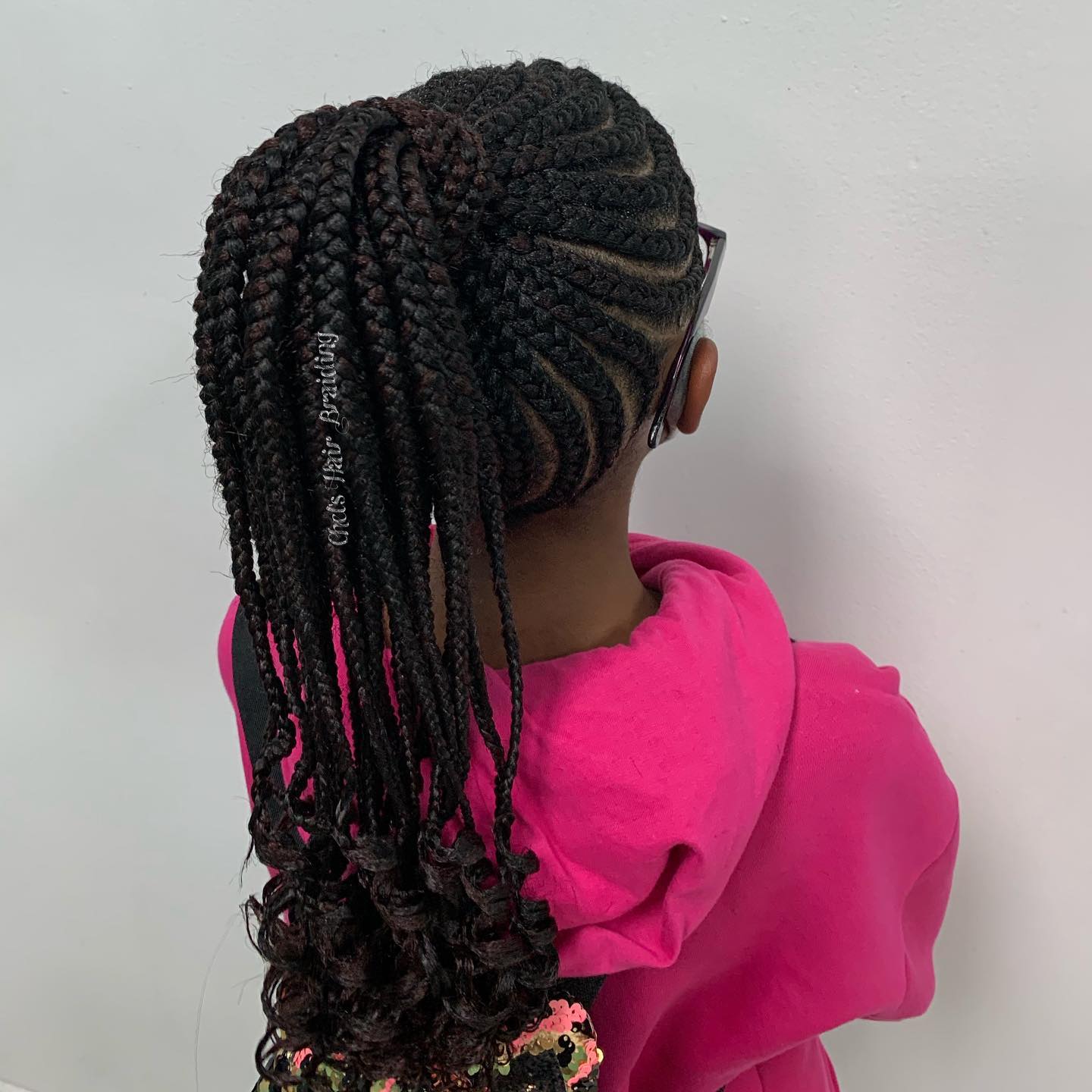 Evolved from Ghana braid and feed-in cornrows. It is fire and elegant. Stitch braids are a good protective style. Will aid length retention due to less hair manipulation. Great fit for all ages. The magnificence of the stitch braids is in the final look a neat and unique look. One can opt to add decorations (beads or colorful strain to some braids). Long lasting. You can have a bun, ponytail, half up and half down, etc.