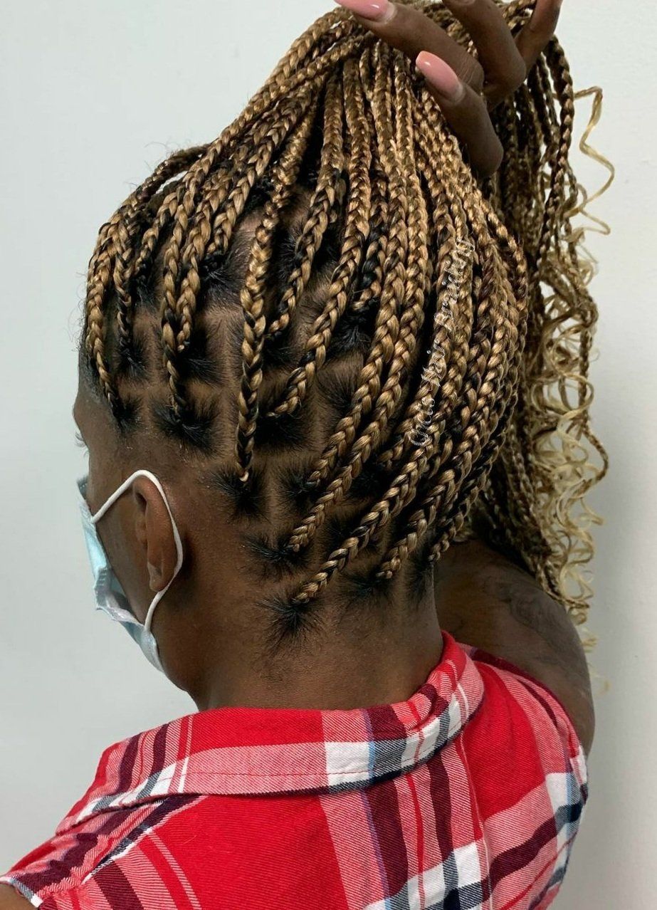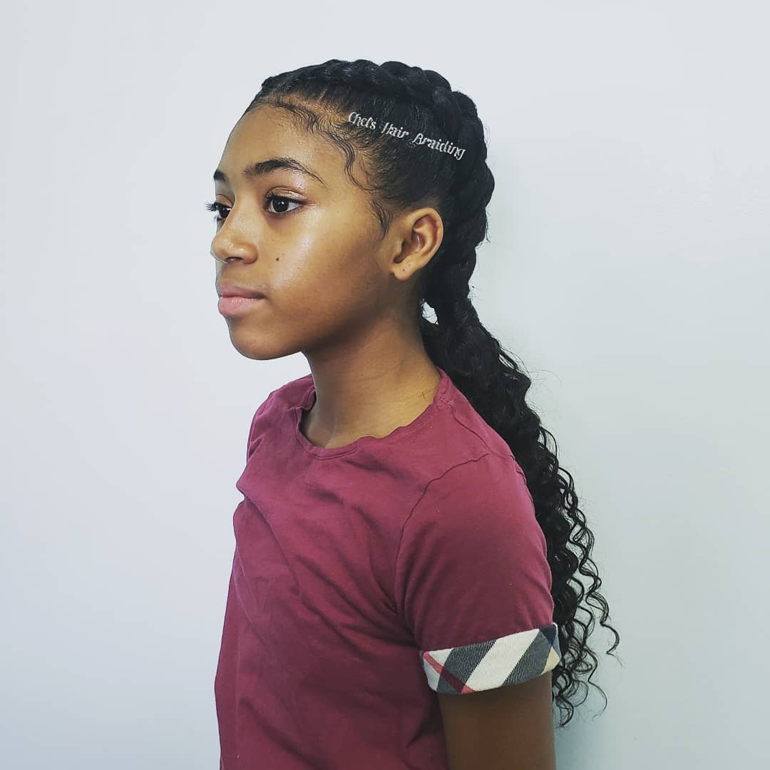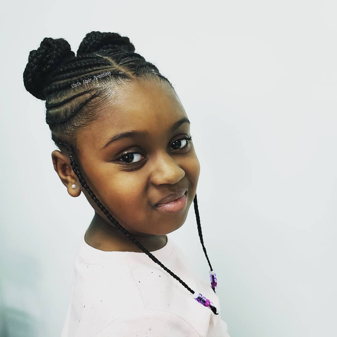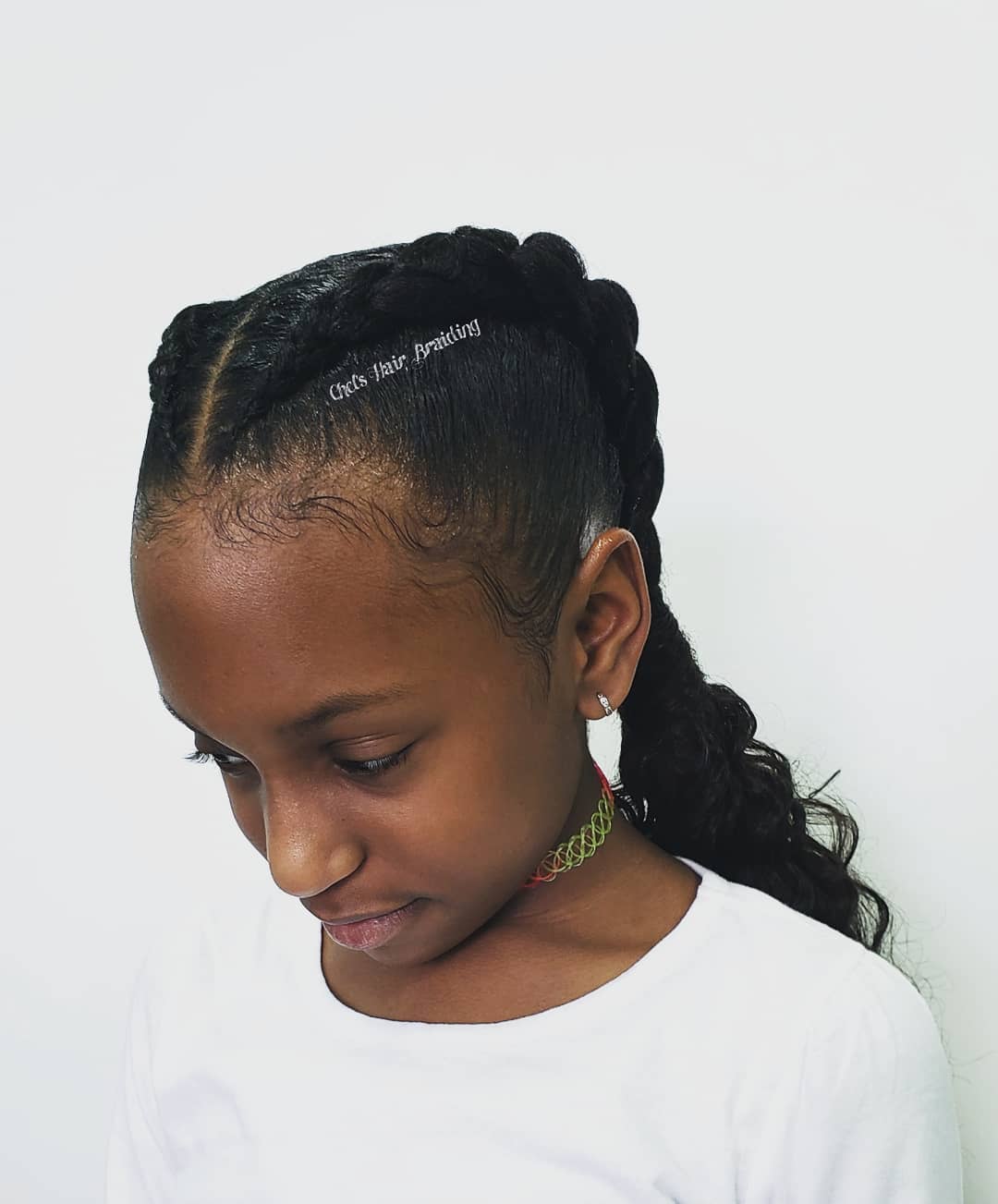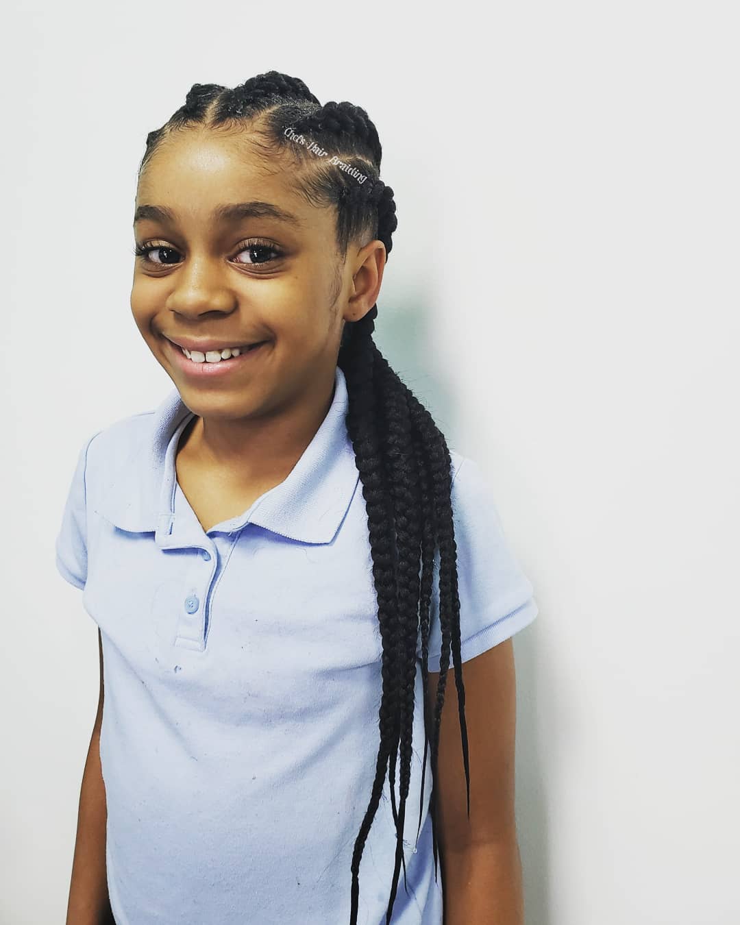 Evolved from Ghana braid and feed-in cornrows. It is fire and elegant. Stitch braids are a good protective style. Will aid length retention due to less hair manipulation. Great fit for all ages. The magnificence of the stitch braids is in the final look a neat and unique look. One can opt to add decorations (beads or colorful strain to some braids). Long lasting. You can have a bun, ponytail, half up and half down, etc.