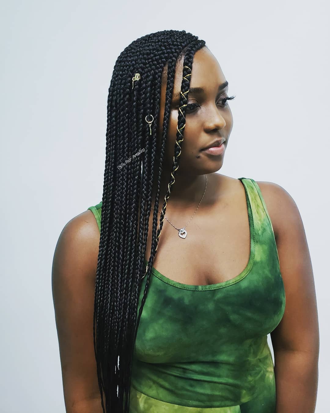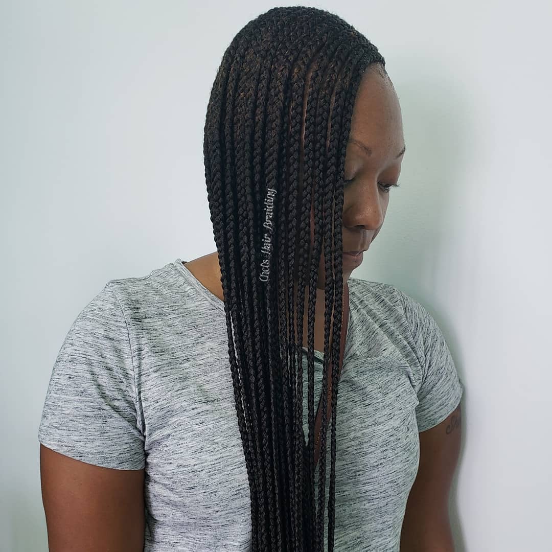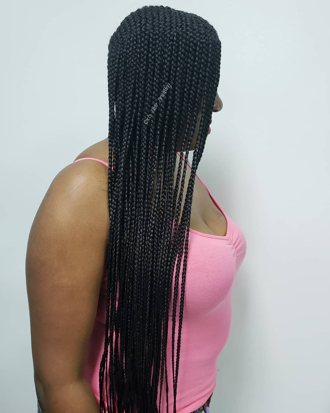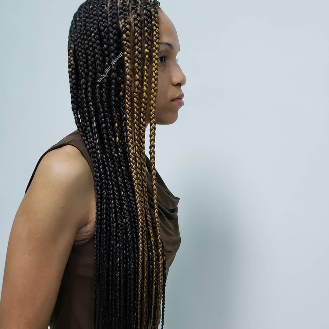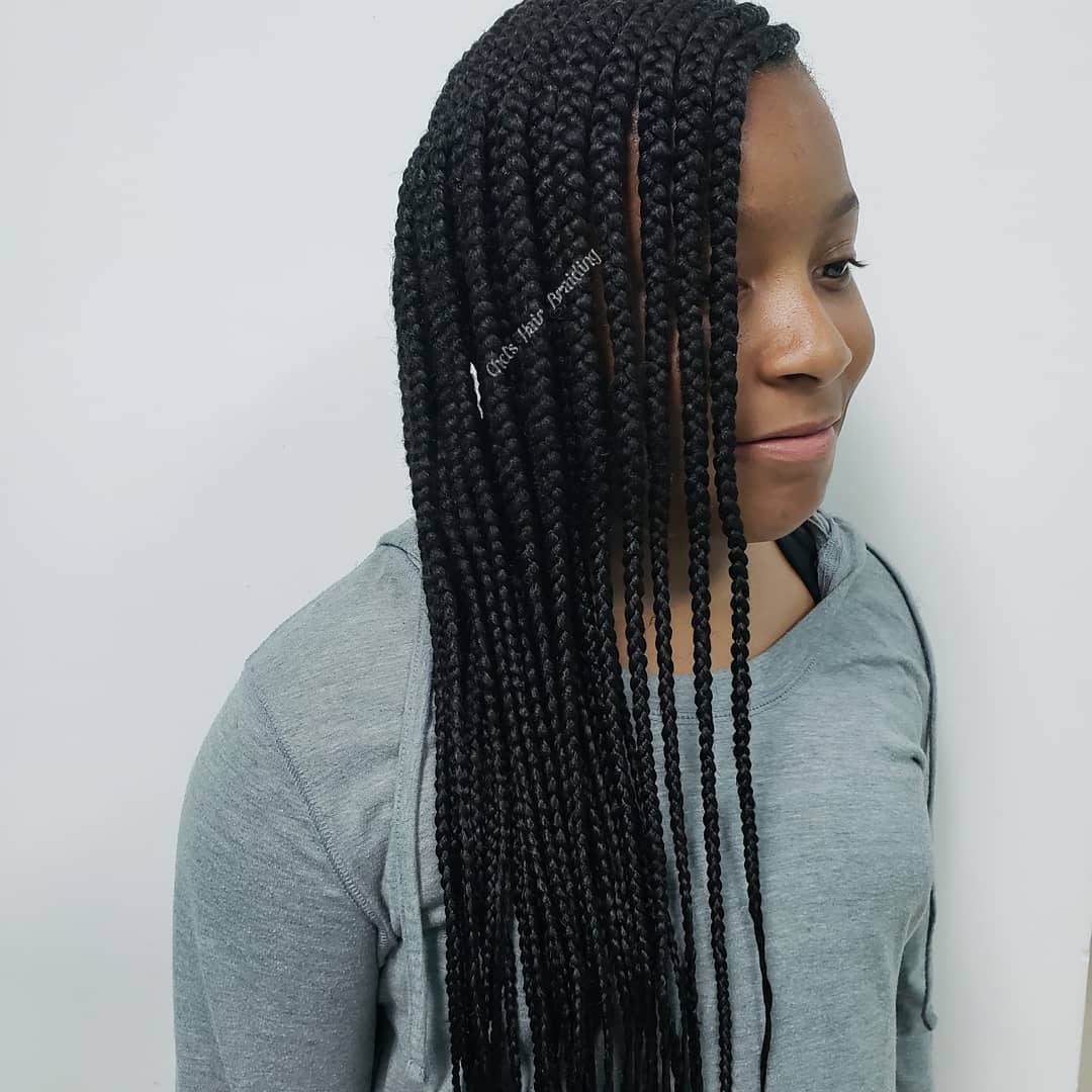 Box braids will always be the crown jewel of protective styles. Box Braids are the ultimate low maintenance look. Box braids are a very good protective style. It can help prevent breakage and retain length because your afro hair will be less manipulated day to day. Box Braids come in different length and size.