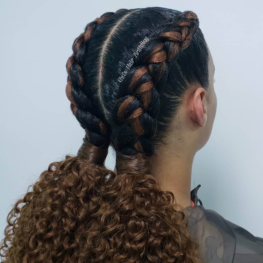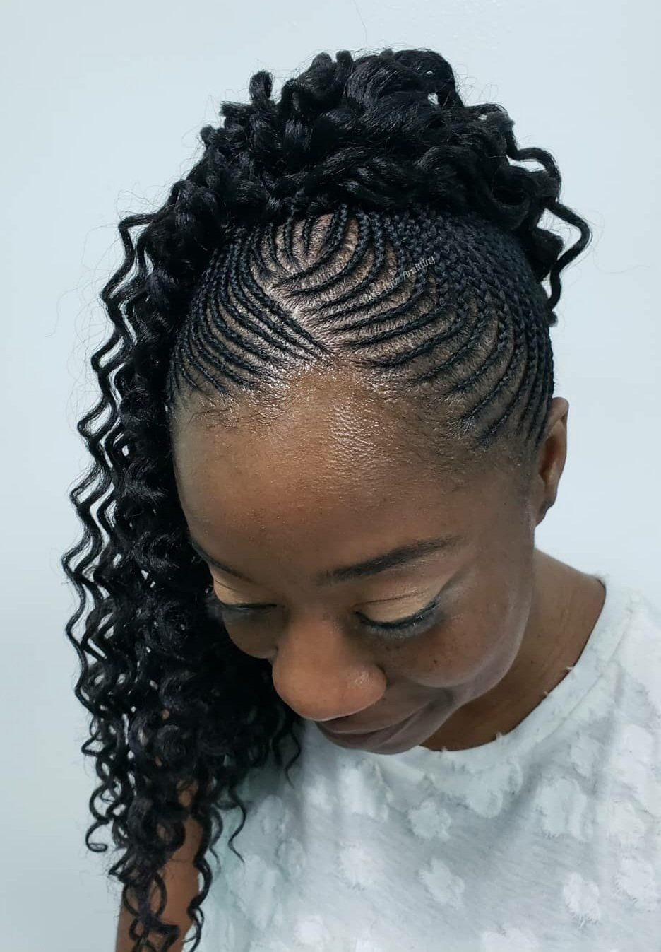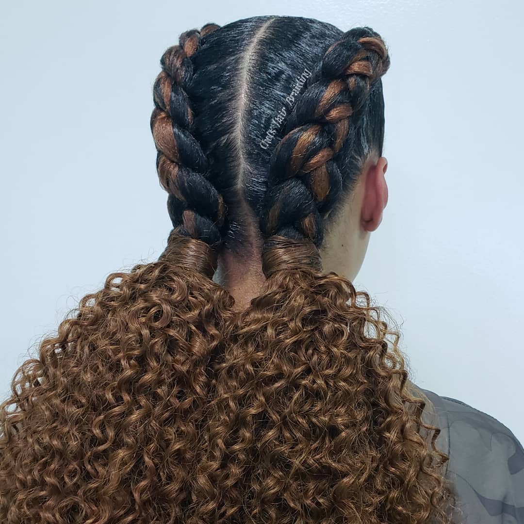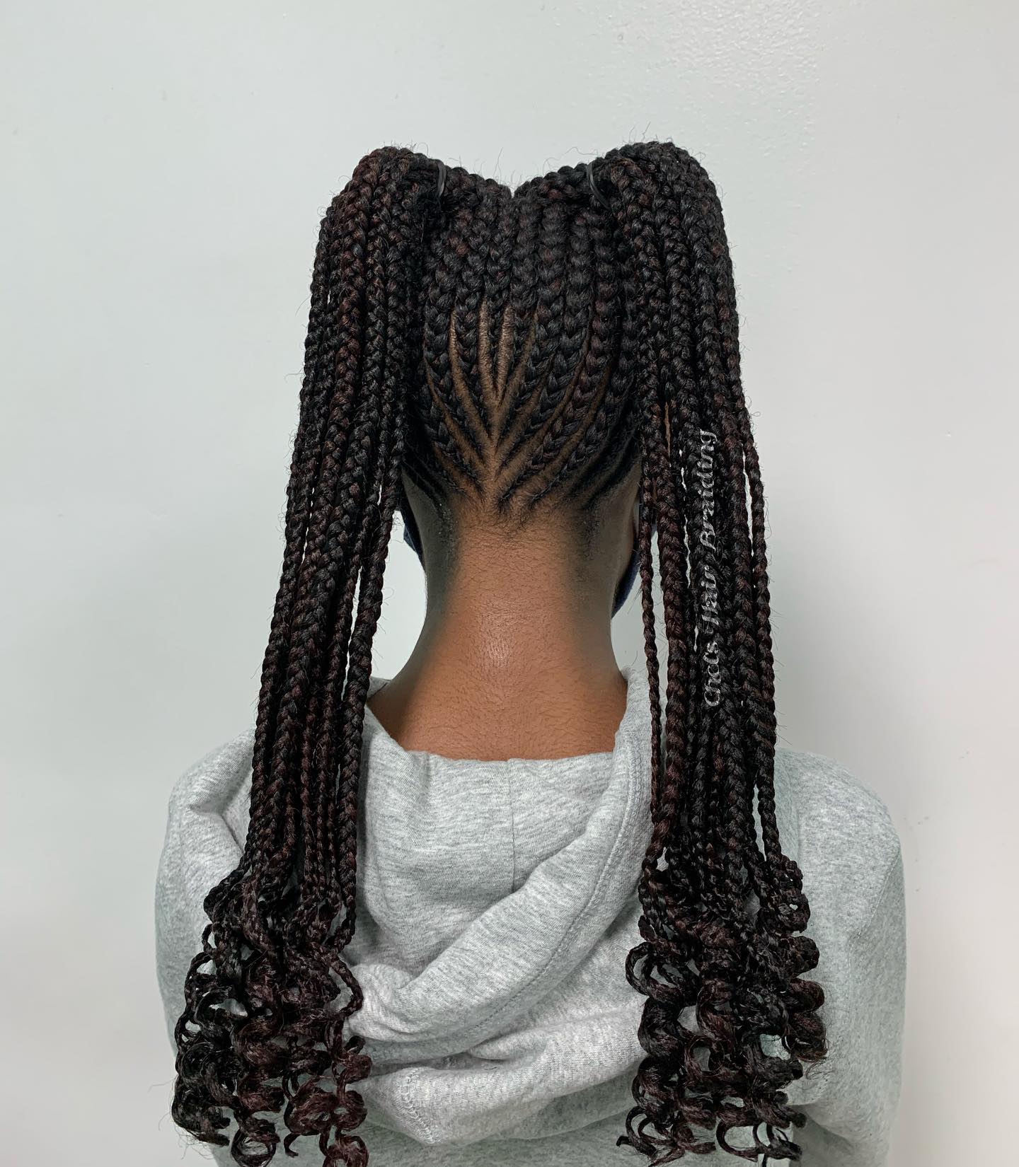 Protective hairstyle inspired by the Fulani people of Africa. It is a protective style, very elegant for queens. It is cornrow-braided in front and box braided or Senegalese or knotless in the back of the head. Very lightweight, helping retain length. Can be well-accessorized with beads and cori. One of the most popular styles worn by celebrities, magazines, and red carpet. Patterns of thin to medium. Whether you want to rock waist-long braids or go for a braided bob, there is a Fulani hairstyle for you to love.