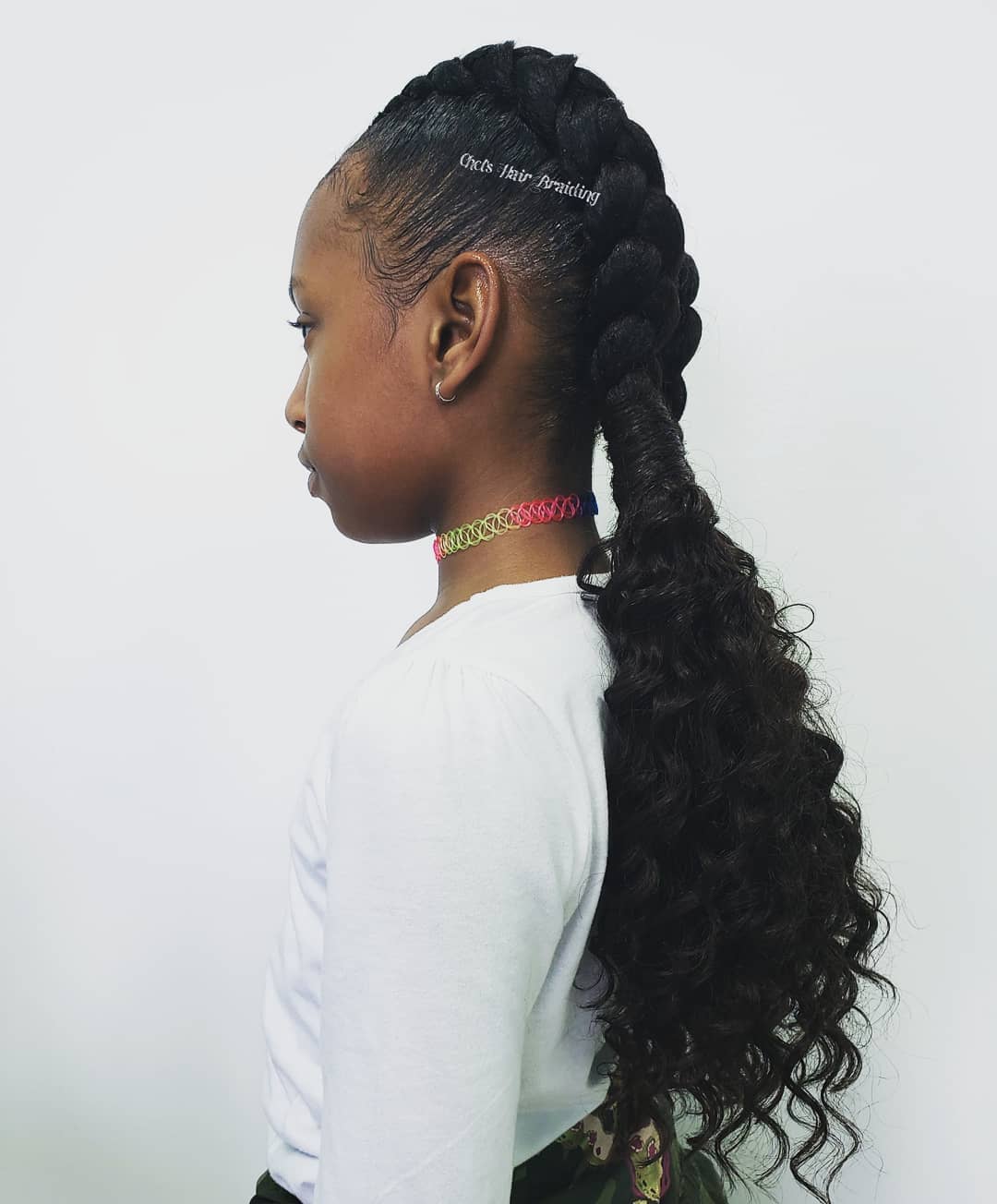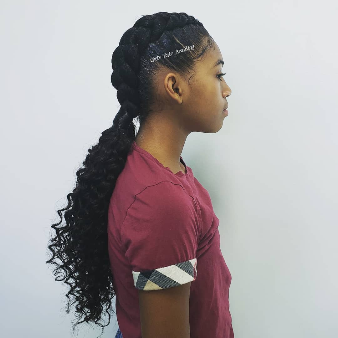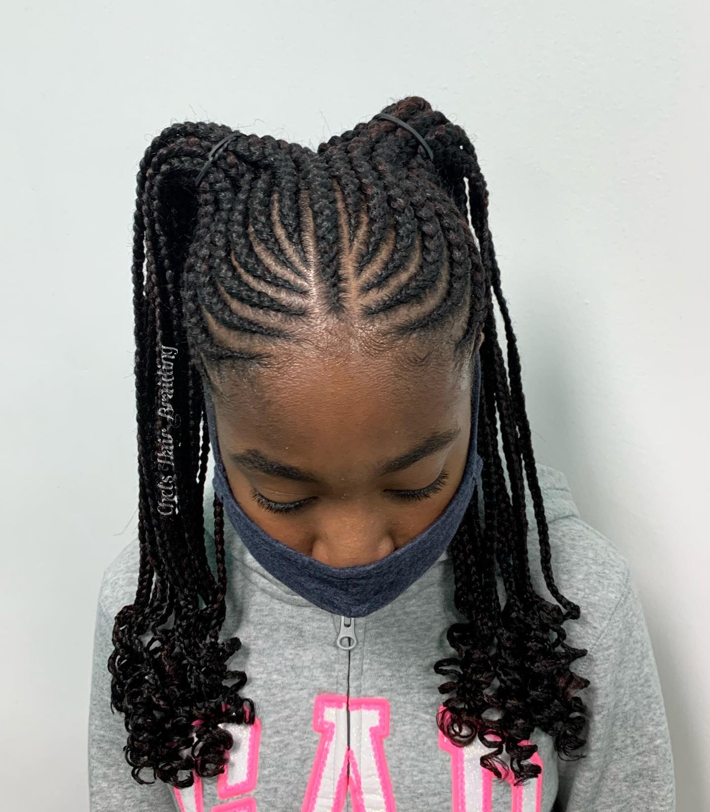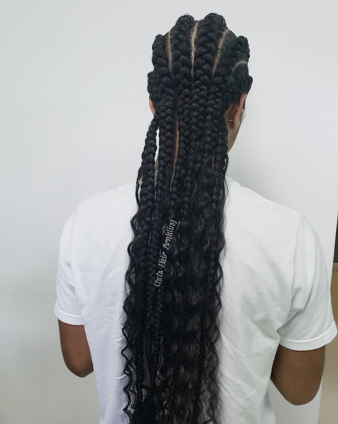 Protective hairstyle inspired by the Fulani people of Africa. It is a protective style, very elegant for queens. It is cornrow-braided in front and box braided or Senegalese or knotless in the back of the head. Very lightweight, helping retain length. Can be well-accessorized with beads and cori. One of the most popular styles worn by celebrities, magazines, and red carpet. Patterns of thin to medium. Whether you want to rock waist-long braids or go for a braided bob, there is a Fulani hairstyle for you to love.