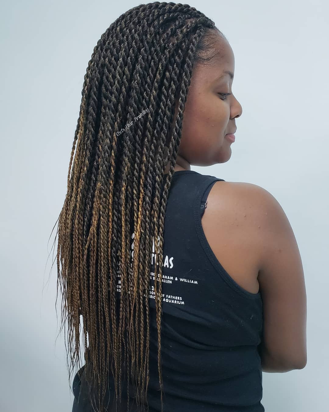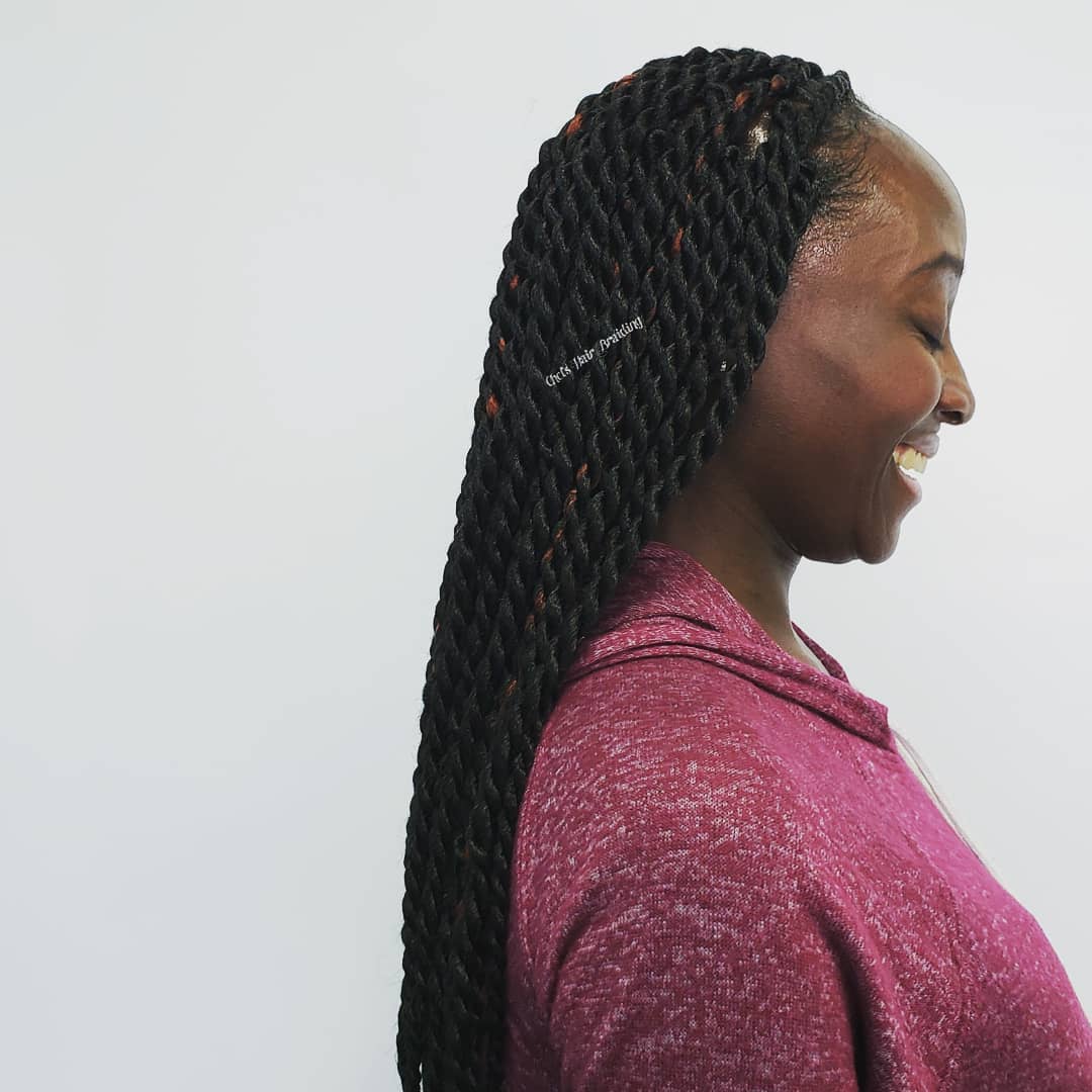 Mimic the natural hair. Low maintenance and very easy to maintain. Very good protection style due to its extreme lightweight. Well secure soft twists because each twist starts with a braid to secure the root of the twists. Similar to Senegalese twists. Best for those with natural hair even curly but not to straightened hair. Comes in crochet as well.