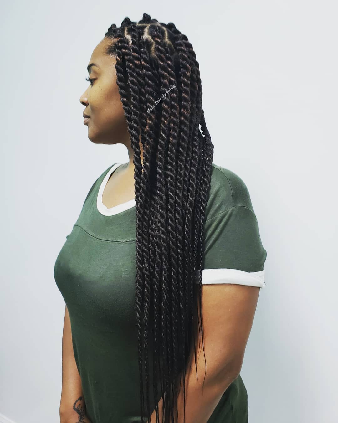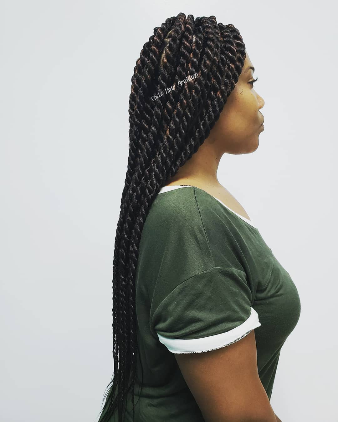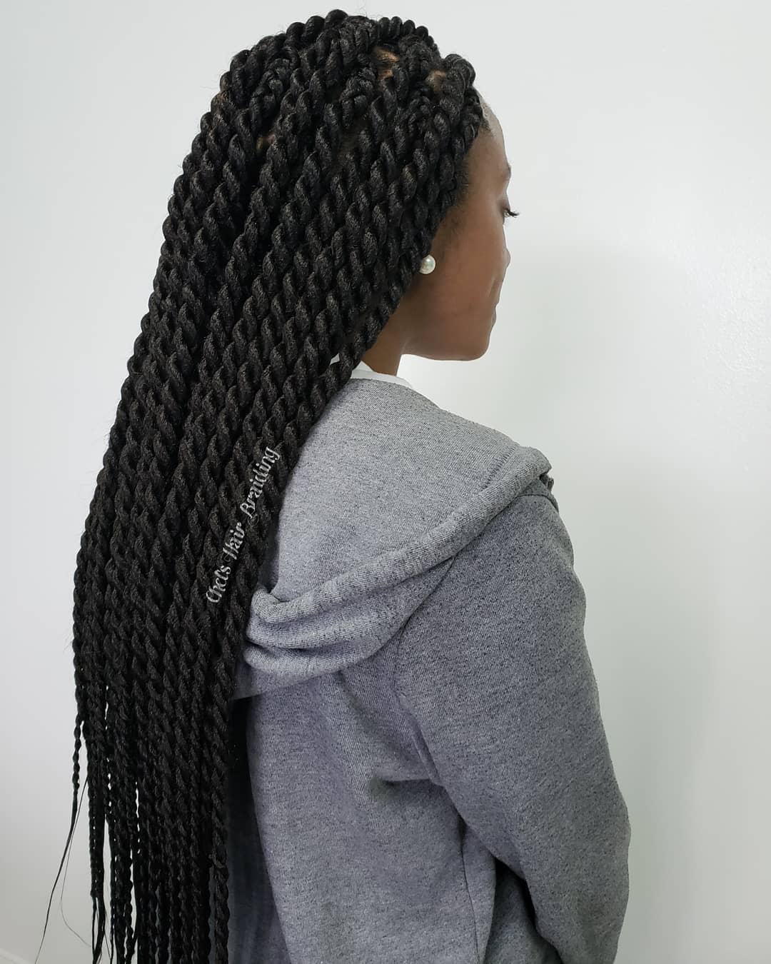 Unlike Marley twists, it is a softer protective style. Created by twisting both natural hair and chunky Havana extensions together, giving a lighter but more voluminous effect. It is a hassle-free way to diversify your image. From cute buns to sleek ponytails to side-swept designs will place twists always favor unique hairdos without much effort. Once incorporated into your own hair, you will enjoy styling your hair any way you want.