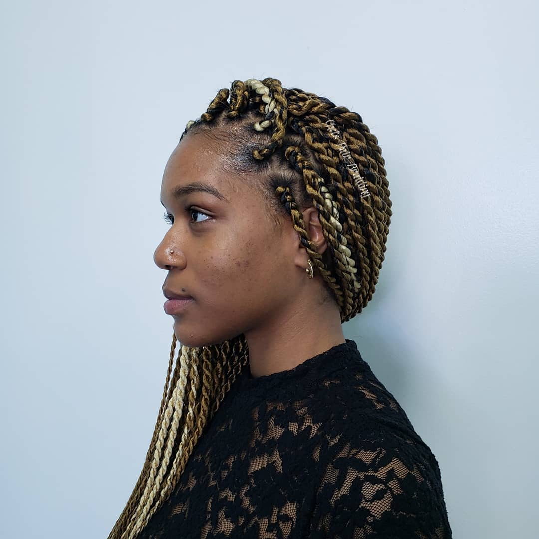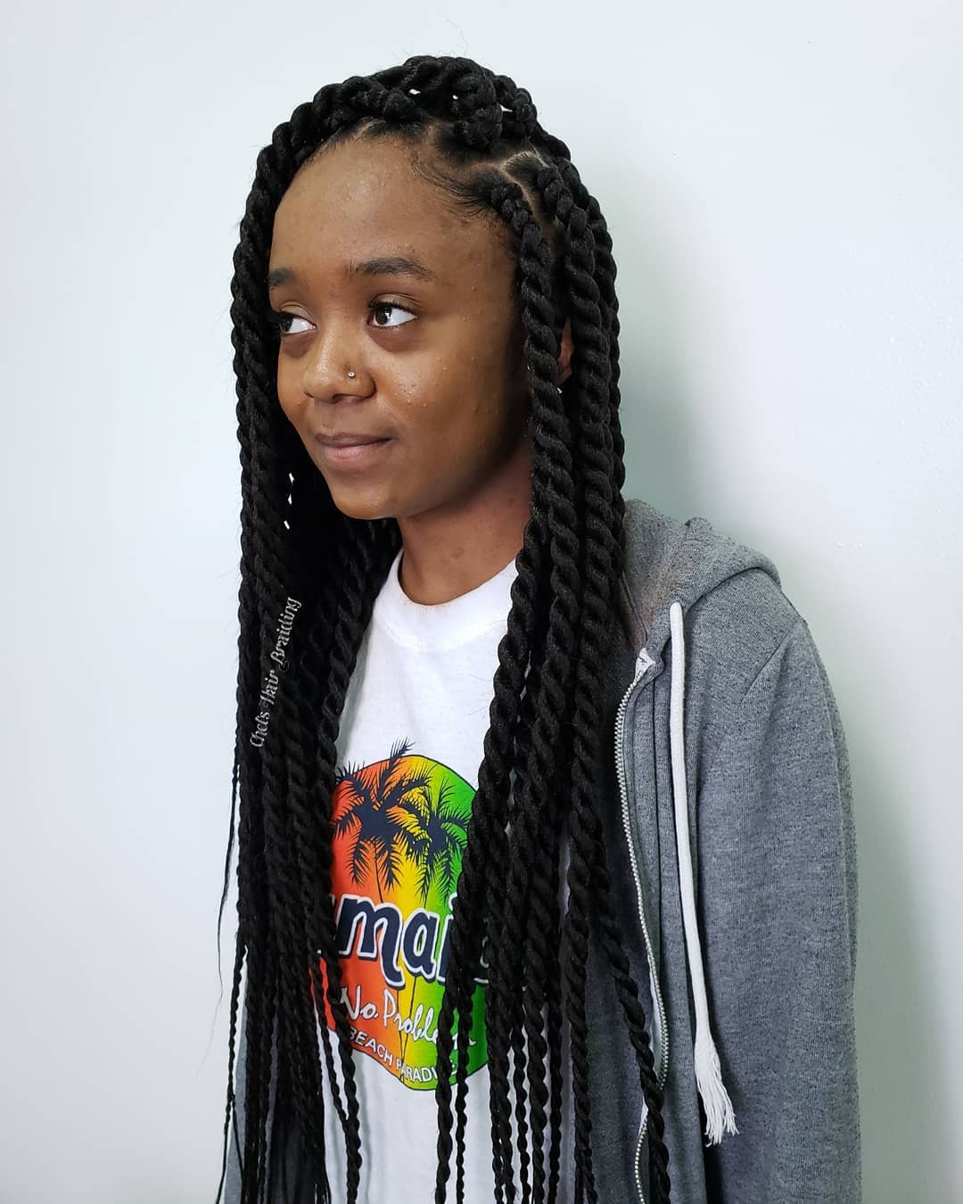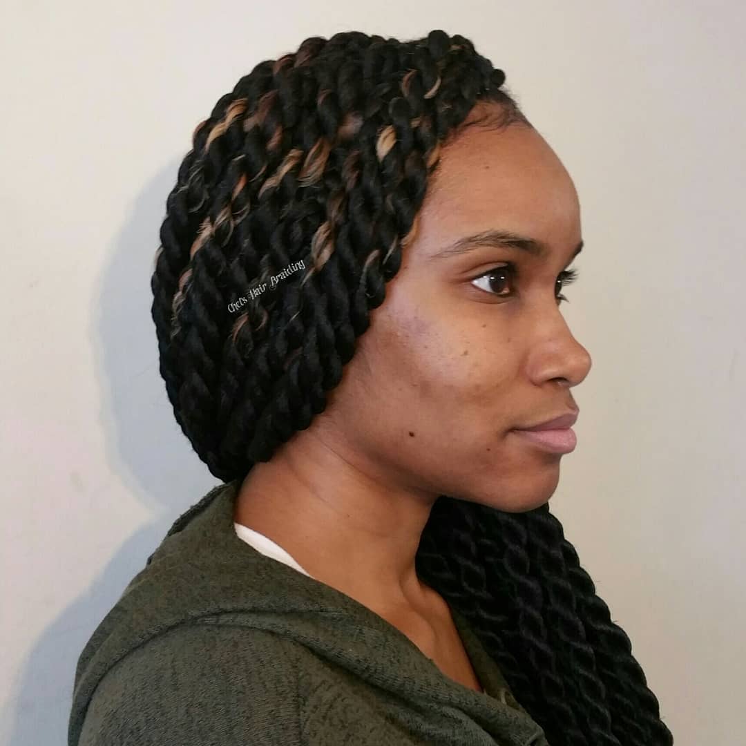 Unlike Marley twists, it is a softer protective style. Created by twisting both natural hair and chunky Havana extensions together, giving a lighter but more voluminous effect. It is a hassle-free way to diversify your image. From cute buns to sleek ponytails to side-swept designs will place twists always favor unique hairdos without much effort. Once incorporated into your own hair, you will enjoy styling your hair any way you want.