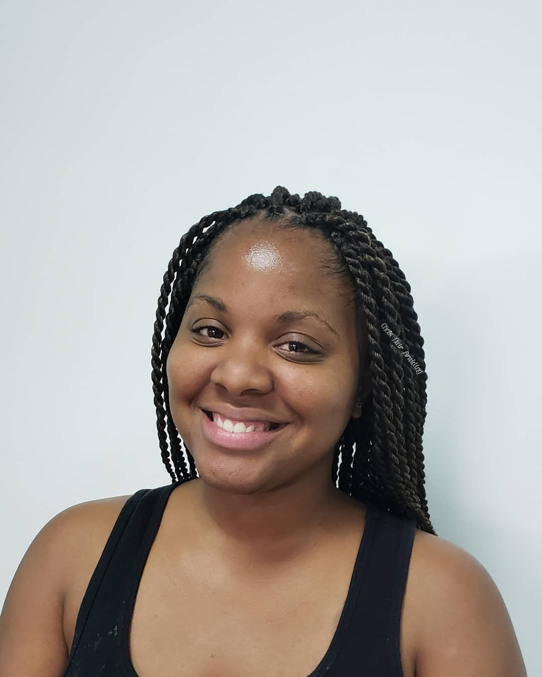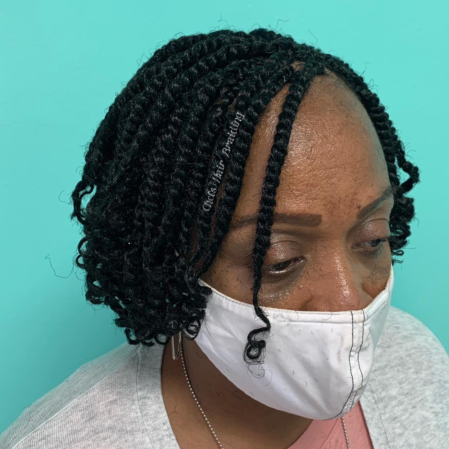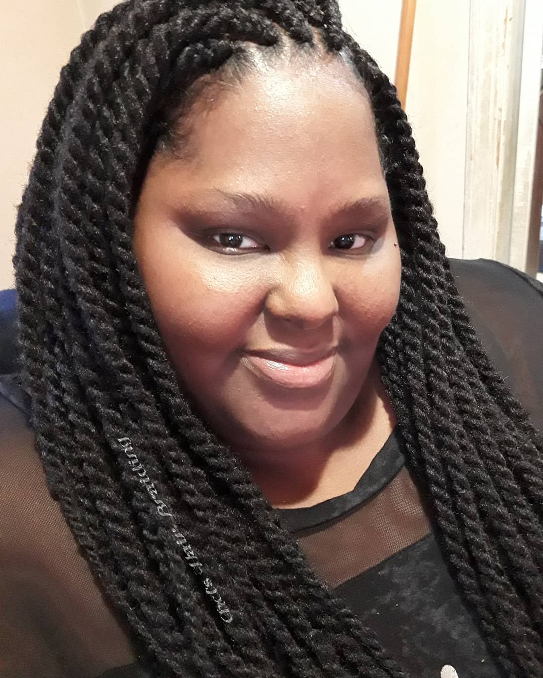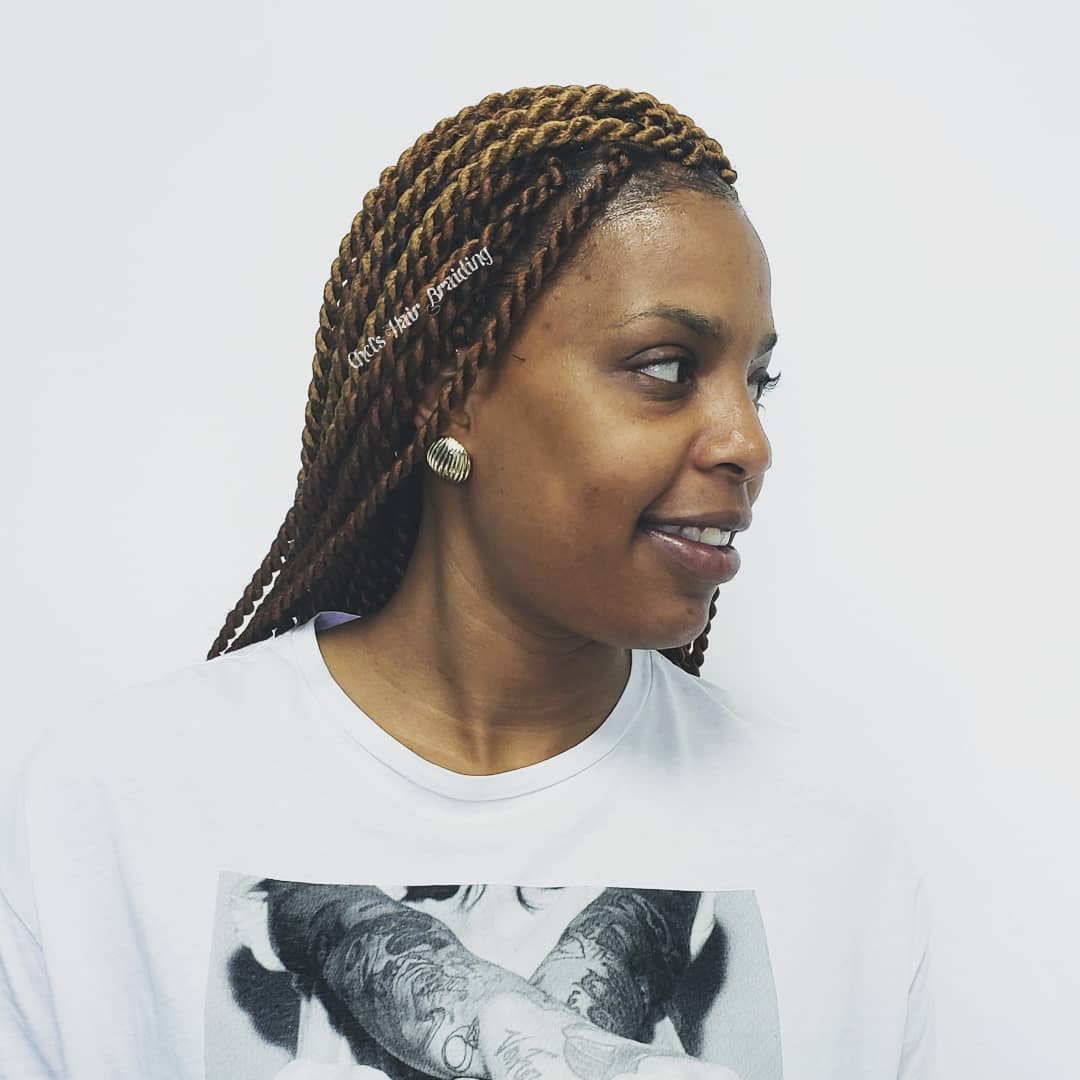 Shoulder length twist using Marley extensions make this twist appear very natural. Less maintenance required. Perfect to fit winter months.