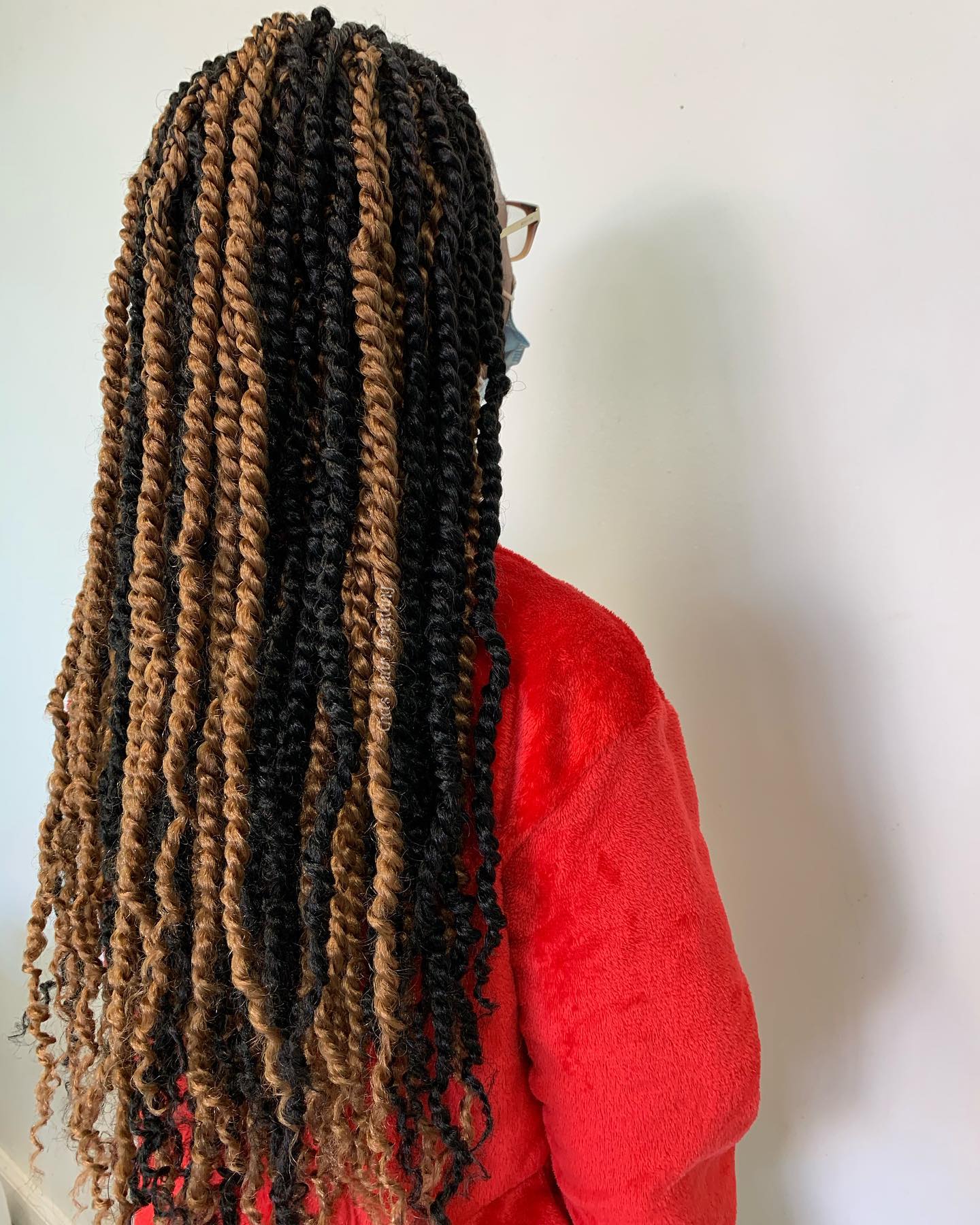 Passion twists are the trending way to wear twists less coarse than Marley. Passion Twist style is very lightweight meaning less tension on hair and scalp. Passion Twists make hair grow while protecting it. What makes Passion Twists style unique is that each twist comes out unique, unlike Marley style and Senegalese style.